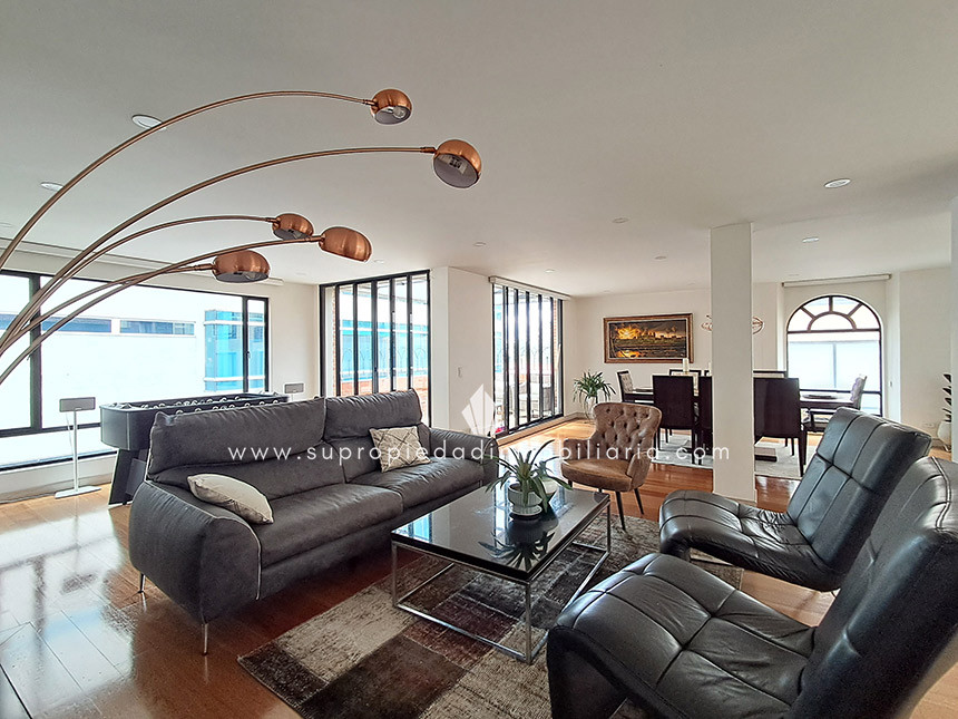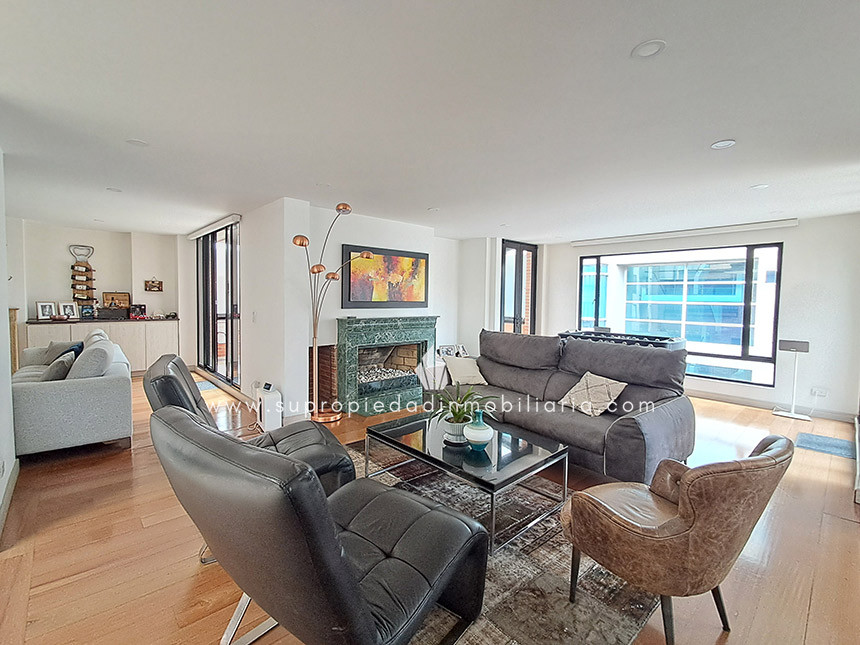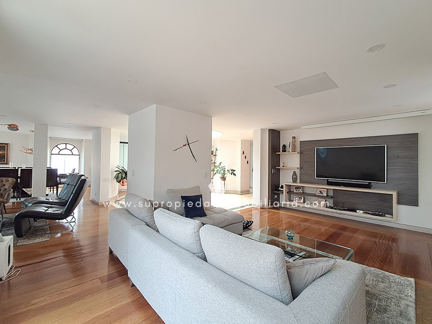 Apartamento en venta, Chico Navarra, Chapinero. Exclusivo apartamento remodelado de 360 m² con acabados en mármol y gran iluminación. Acceso directo por ascensor. 3 habitaciones secundarias con baño y closet propio + habitación principal con walk-in closet y jacuzzi. Habitación de servicio con baño (total 5 alcobas y 6 baños), estudio, 2 salas (una con chimenea), comedor, cocina integral, calentador a gas, 2 terrazas, baño social y zona de ropas. Incluye 4 garajes cubiertos independientes + 2 depósitos. Edificio con videoportero, CCTV, zona BBQ y parque infantil. Ubicación top cerca de Parque Santa Bibiana, Bodytech Chico y Transmilenio 106. ¡Lujo absoluto en el sector más exclusivo! ¡Agenda tu visita ya! SE ENTREGA SIN AMOBLAR 0.1