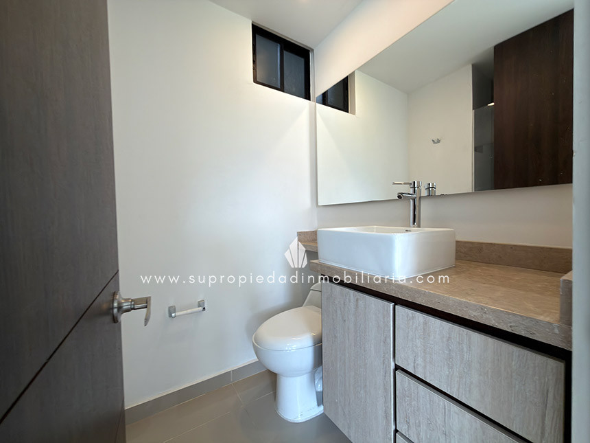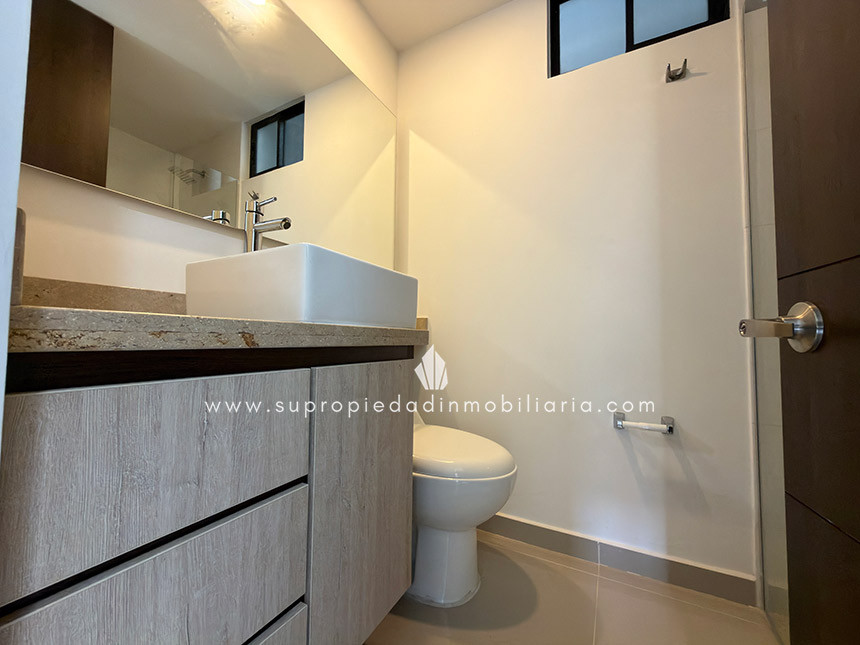 Apartamento en arriendo en Sabaneta. Este inmueble está ubicado en el sector del Carmelo. Cuenta con un área de 80m2, distribuidos en 2 habitaciones, la principal con baño y Vestier; baño social, sala comedor, cocina integral, balcón, piso en porcelanato. Cuenta con red de gas y calentador de paso, acabados modernos y excelente iluminación. Tiene parqueadero privado y cuarto útil. El edificio cuenta con ascensor, parqueadero para visitantes, portería 24 horas, citofonia, shut de basuras, zonas verdes, juegos infantiles, sala de espera, circuito cerrado de TV, piscina. Queda cerca de la avenida el Poblado, supermercado la vaquita, a unas cuadras del parque de Sabaneta; y cuenta con excelentes rutas de transporte público. Contáctanos!!! y encuentra con nosotros el inmueble que buscas. 0.1
