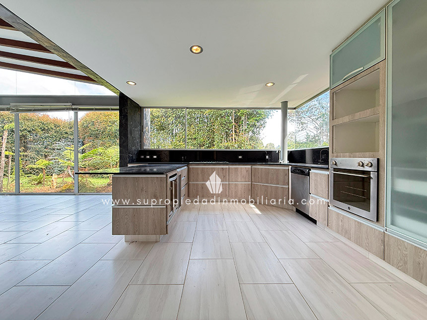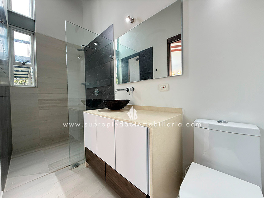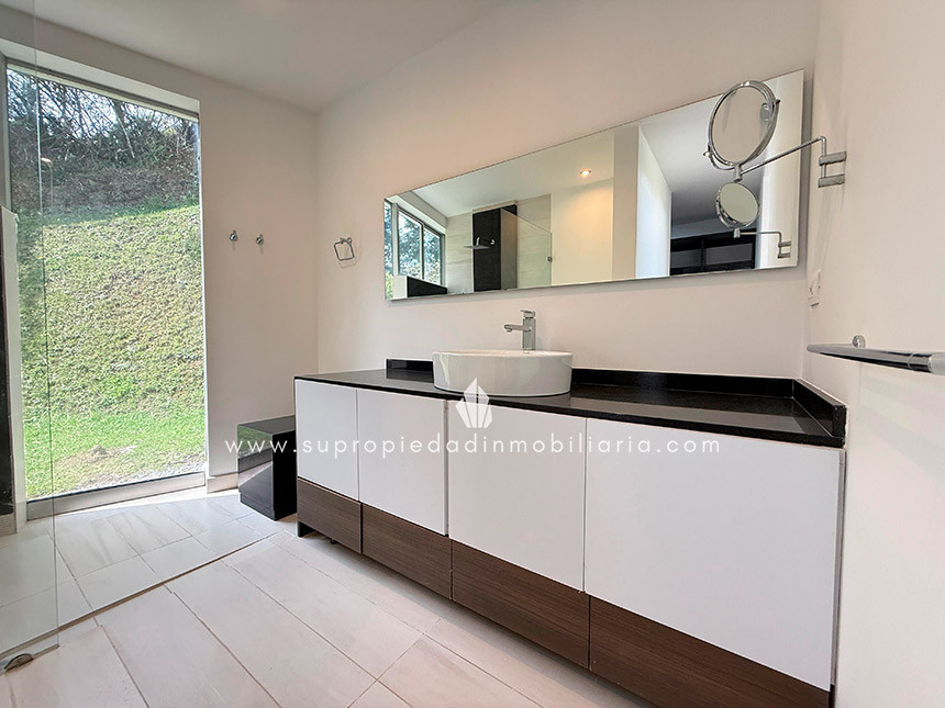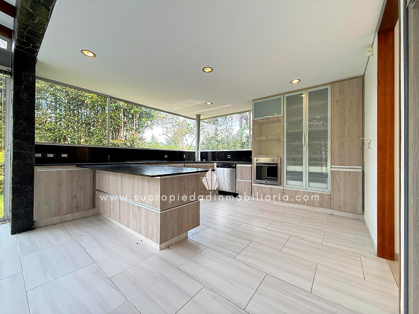Casa en arriendo en Altos del Escobero, Envigado. ¡No pierdas la oportunidad de vivir en una zona muy natural! Esta cómoda y amplia casa cuenta con 4 habitaciones principal con Vestier y baño privado y 2 parqueaderos cubiertos con posibilidad de parquear afuera otros 3 carros, perfecta para familias grandes o para aquellos que aman recibir visitas. Con 400 metros cuadrados, tendrás todo el espacio que necesitas para vivir cómodamente. La cocina es amplia, integral con horno. Esta casa es muy iluminada y con amplias zonas verdes. No pierdas la oportunidad de disfrutar de todas las comodidades que esta casa tiene para ofrecer. La unidad cuenta con portería 24 horas, citófono, zonas verdes, zona para mascotas, juegos infantiles, pista de trote o senderos, zona BBQ, circuito cerrado de TV. Con vías de fácil acceso por las Palmas y el Peaje del Escobero, queda cerca de la Universidad CES, Colegio la Salle, Éxito Express. ¡Contáctanos ahora y agenda una visita!