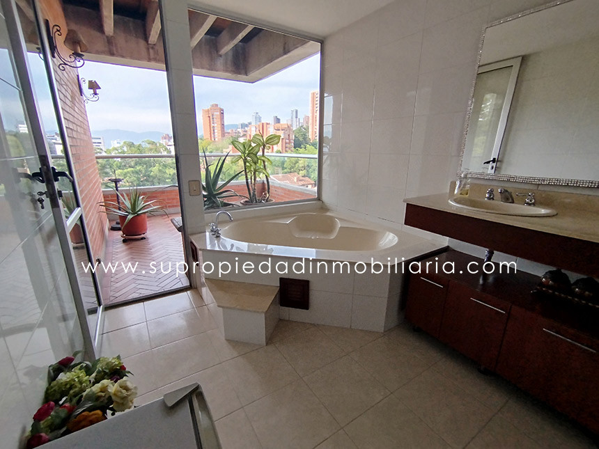 Apartamento en Venta en Los Benedictinos, Envigado Descubre la comodidad en este pent-house dúplex de 260 m², ubicado en una de las zonas más exclusivas de Envigado. Este amplio apartamento cuenta con 4 habitaciones, principal con baño privado, Vestier y balcón con vista panorámica a la ciudad. Además, dispone de habitación de servicio con baño, un estudio, sala de TV, y una encantadora terraza cubierta. La cocina integral en "L", con red de gas, ofrece el espacio perfecto para disfrutar en familia. Su diseño moderno se complementa con pisos de madera laminada y baldosa, y cuenta con 3 parqueaderos cubiertos y un cuarto útil. Ubicado cerca del Colegio Benedictino, Euro La Frontera, y el Centro Comercial Sao Paulo, con excelentes vías de acceso como la Loma de los Benedictinos y la Avenida El Poblado. La unidad ofrece completas zonas comunes: gimnasio, piscina, sauna, turco, jacuzzi, zonas verdes, área para mascotas y más. ¡Haz de este lugar tu hogar ideal! Contáctanos. 0.1