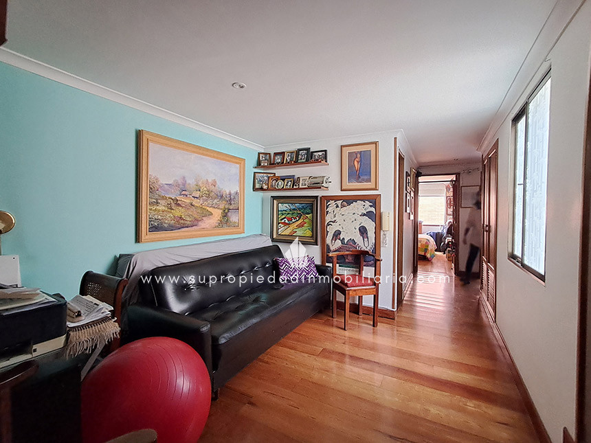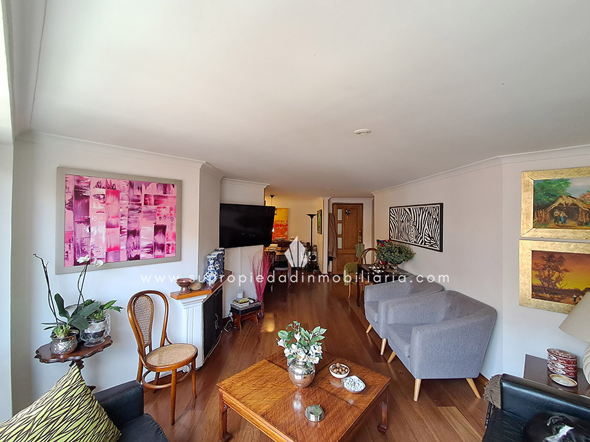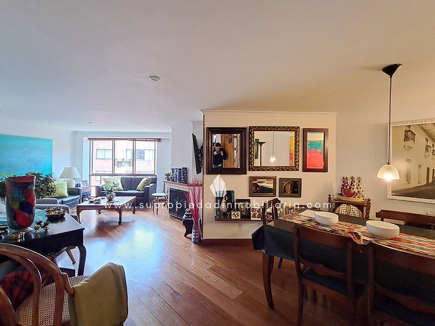 Apartamento en venta en Rincón del Chicó, Usaquén Vive la elegancia de Rincón del Chicó en este apartamento de 122 m² con vista exterior y excelente iluminación natural. Disfruta de sus 3 habitaciones, estudio, zona de TV, sala comedor con chimenea, cocina integral, zona de ropas, habitación de servicio con baño, baño social y balcón ideal para tardes tranquilas. Cuenta con vestier, clósets, red de gas natural, calentador, puerta de seguridad, cuarto útil y parqueadero doble lineal cubierto. El edificio ofrece portería 24 h, ascensor y citófono. Ubicado cerca de la Universidad Militar, el CC Santa Ana y con acceso por Calle 100, Carrera 9 y Calle 106. Perfecto para quienes buscan confort y tranquilidad en una zona residencial exclusiva del norte de Bogotá. Haz de este espacio tu nuevo hogar y disfruta de una vida más cómoda. ¡Contáctanos! 10.1
