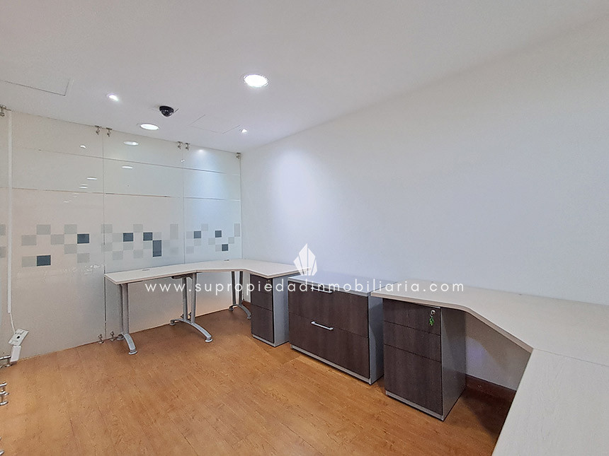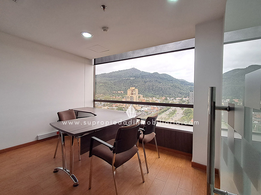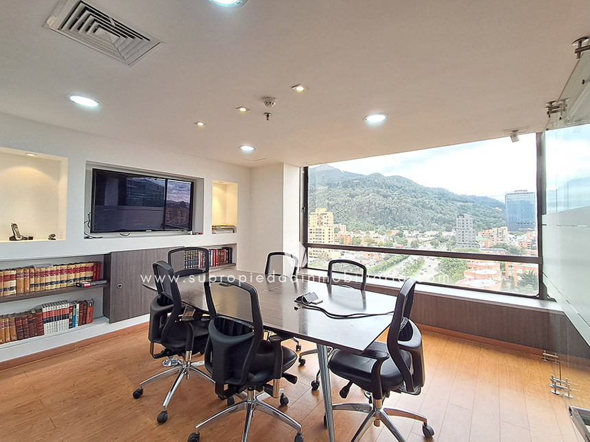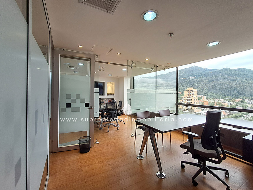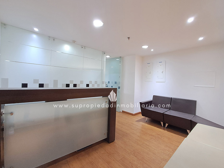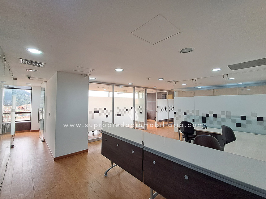 Oficina en arriendo en Santa Ana - Usaquén Ubicada en una de las zonas empresariales más exclusivas del norte de Bogotá, esta oficina de 120 m² ofrece un entorno moderno y funcional. Cuenta con espacio para 16 puestos de trabajo, 3 oficinas cerradas, sala de juntas, cocineta, archivo rodante y archivador empotrado. Excelente iluminación natural, ventanales amplios, divisiones en vidrio templado y hermosa vista a los cerros. Piso en madera laminada, puerta de seguridad, cielo raso en drywall, 1 baño interno y batería de baños en área común. El edificio ofrece portería 24 h, ascensor, parqueadero de visitantes, 2 parqueaderos paralelos, CCTV y alarma. Cerca de Hacienda Santa Bárbara, Cantón Norte y la Embajada de México, con vías de acceso como la Cra. 7, Calle 116 y Av. Cra. 9. Haz crecer tu empresa en el lugar ideal. ¡Contáctanos! 0.1