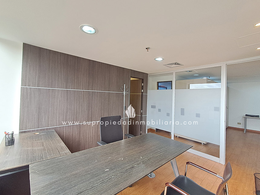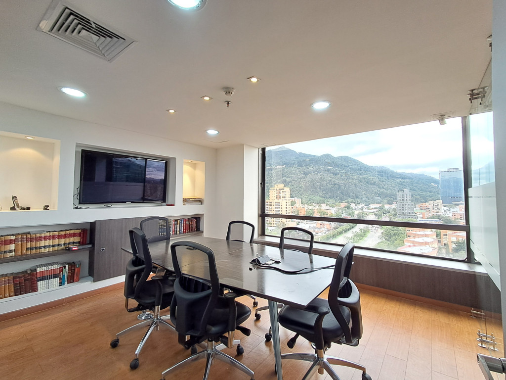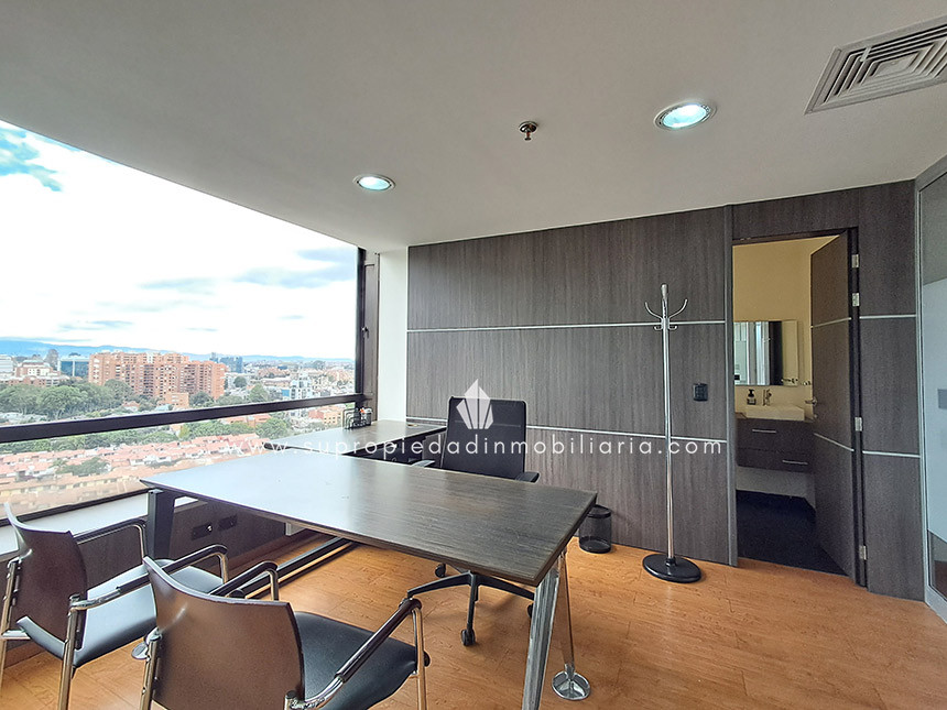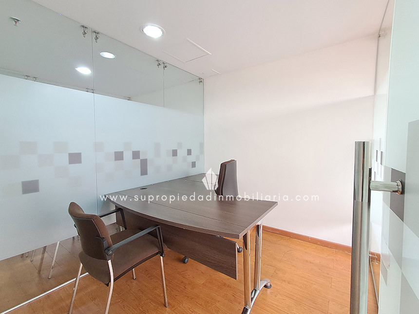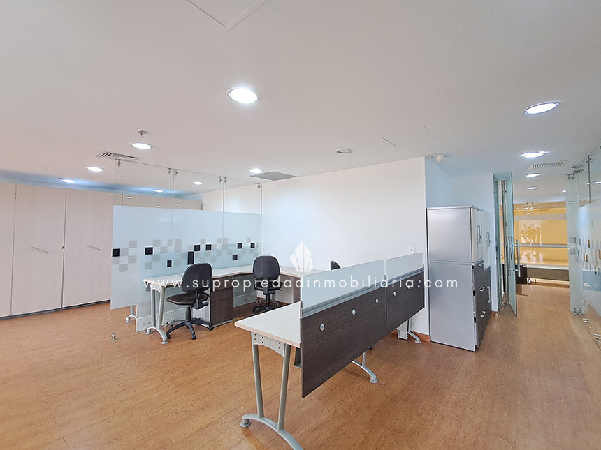 Oficina en arriendo en Santa Ana - Usaquén Ubicada en una de las zonas empresariales más exclusivas del norte de Bogotá, esta oficina de 120 m² ofrece un entorno moderno y funcional. Cuenta con espacio para 16 puestos de trabajo, 3 oficinas cerradas, sala de juntas, cocineta, archivo rodante y archivador empotrado. Excelente iluminación natural, ventanales amplios, divisiones en vidrio templado y hermosa vista a los cerros. Piso en madera laminada, puerta de seguridad, cielo raso en drywall, 1 baño interno y batería de baños en área común. El edificio ofrece portería 24 h, ascensor, parqueadero de visitantes, 2 parqueaderos paralelos, CCTV y alarma. Cerca de Hacienda Santa Bárbara, Cantón Norte y la Embajada de México, con vías de acceso como la Cra. 7, Calle 116 y Av. Cra. 9. Haz crecer tu empresa en el lugar ideal. ¡Contáctanos! 0.1