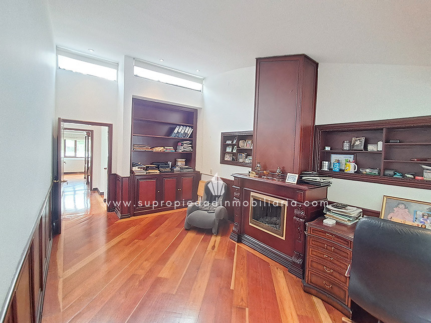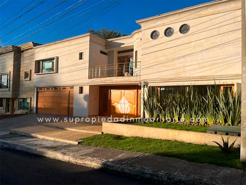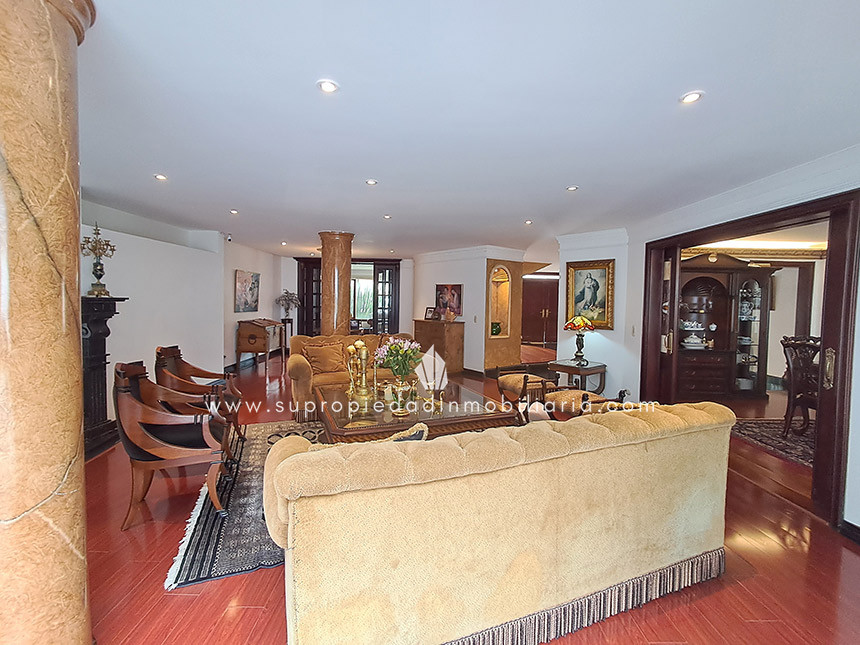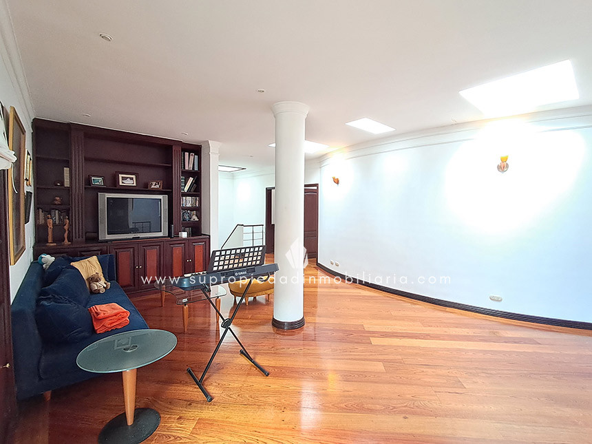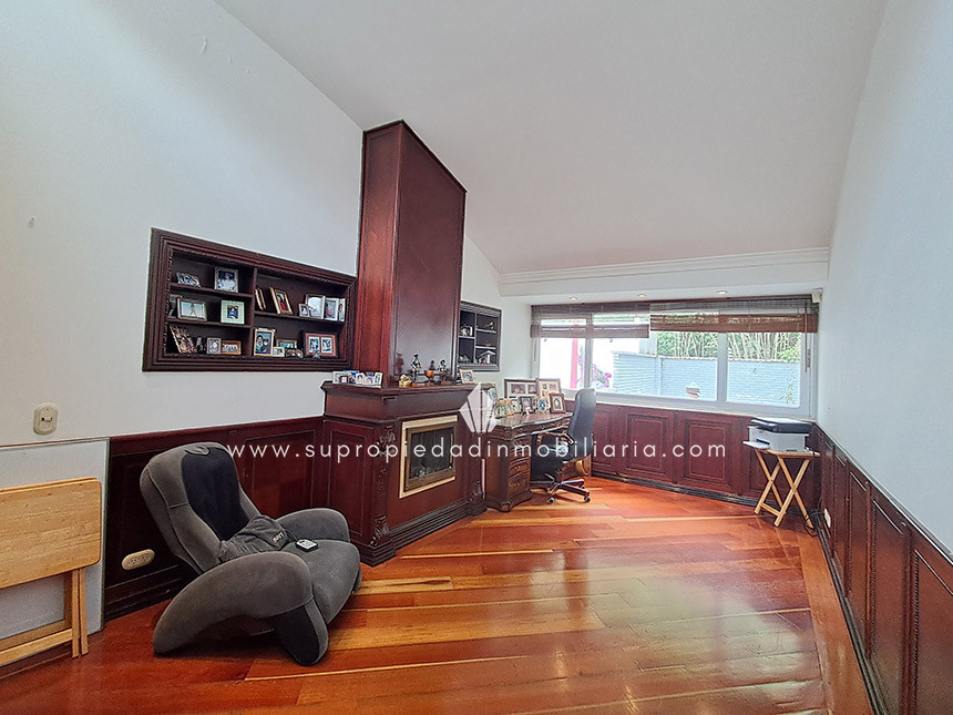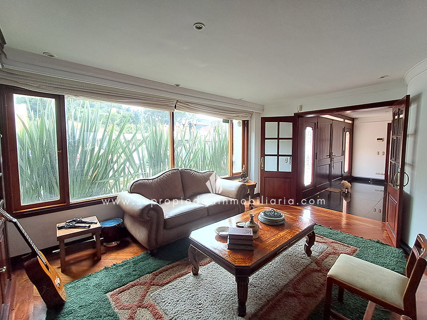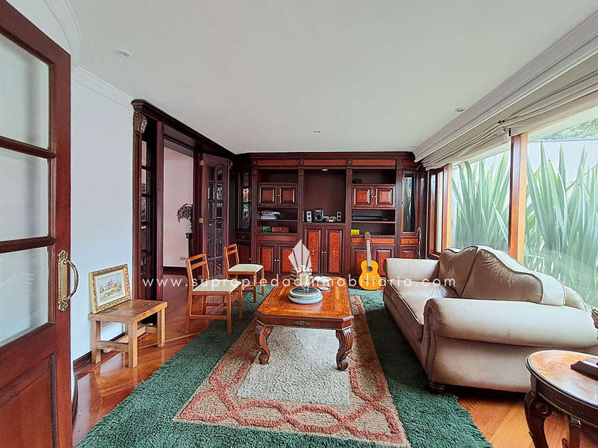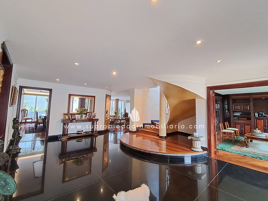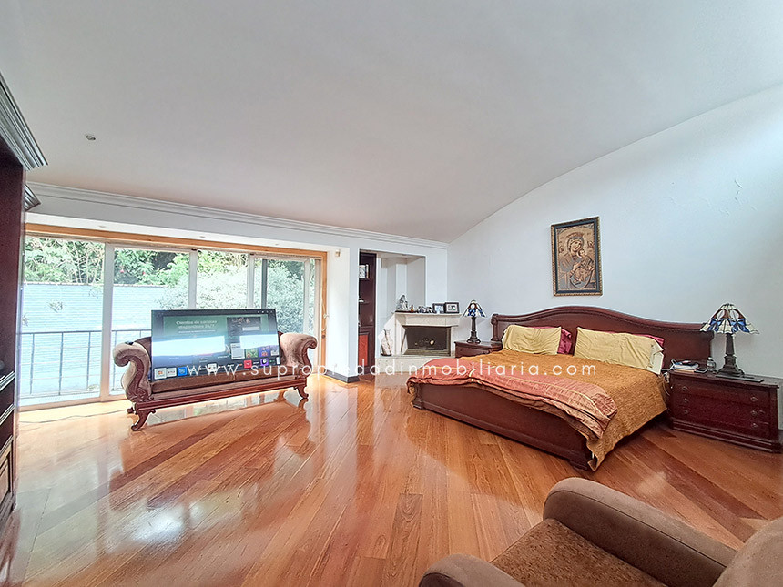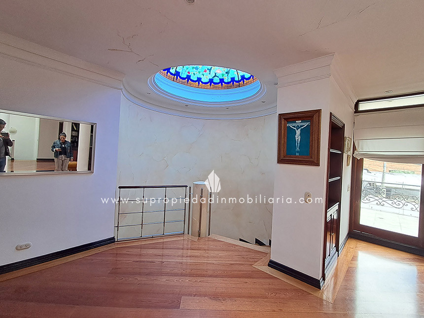 Casa en venta en Santa Ana Oriental, Usaquén. Vive en una de las zonas más exclusivas y seguras de Bogotá. Esta imponente casa de 620 m² construidos y 515 m² de lote ofrece un entorno único con cúpula tipo Tiffany, sala de música y patio privado de 150 m² que colinda con reserva forestal. Disfruta de 4 habitaciones + servicio, 5 baños, estudio, vestier, balcón, terraza, sala con chimenea, zona de TV y cocina integral. Relájate con sauna y jacuzzi en casa. Cuenta con 2 parqueaderos independientes, cuarto útil, excelente luz natural y pisos en mármol. Cerca del Cantón Norte, Universidad Militar y Hacienda Santa Bárbara, con acceso por la Cra. 7, Calle 100, Calle 116 y Av. Caracas. La unidad ofrece portería 24h, zonas verdes, parque infantil, salón social, piscina, sauna, turco, gimnasio, BBQ y más. ¡Exclusividad, confort y naturaleza en un solo lugar! 0.1