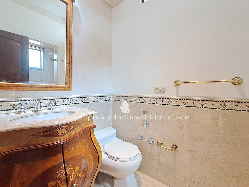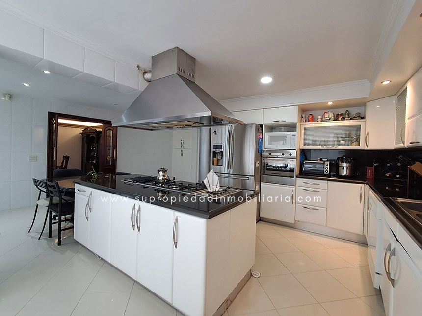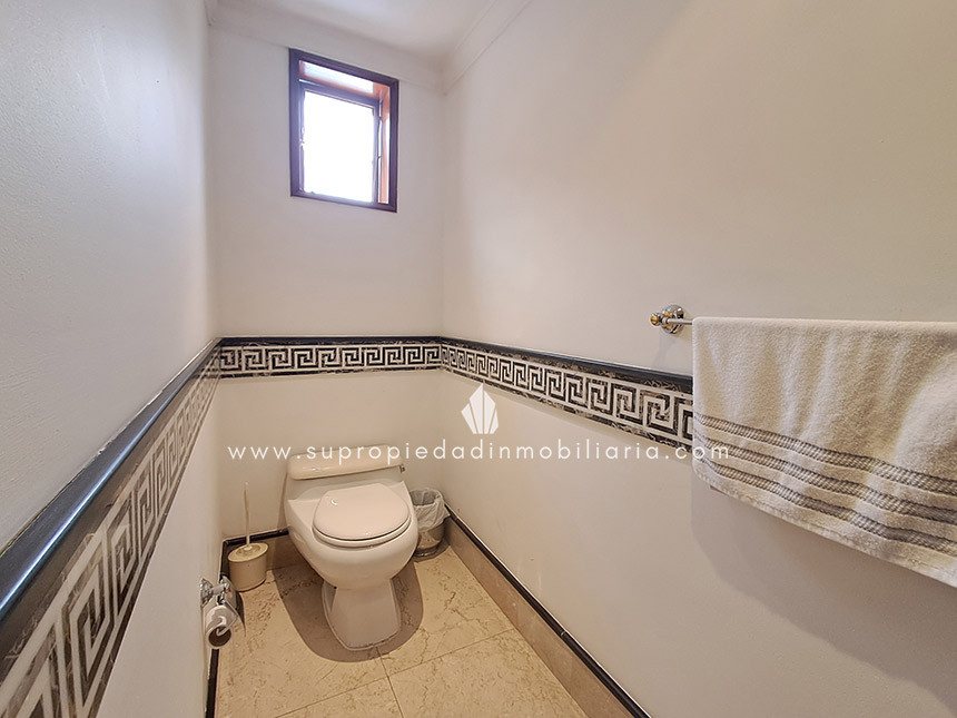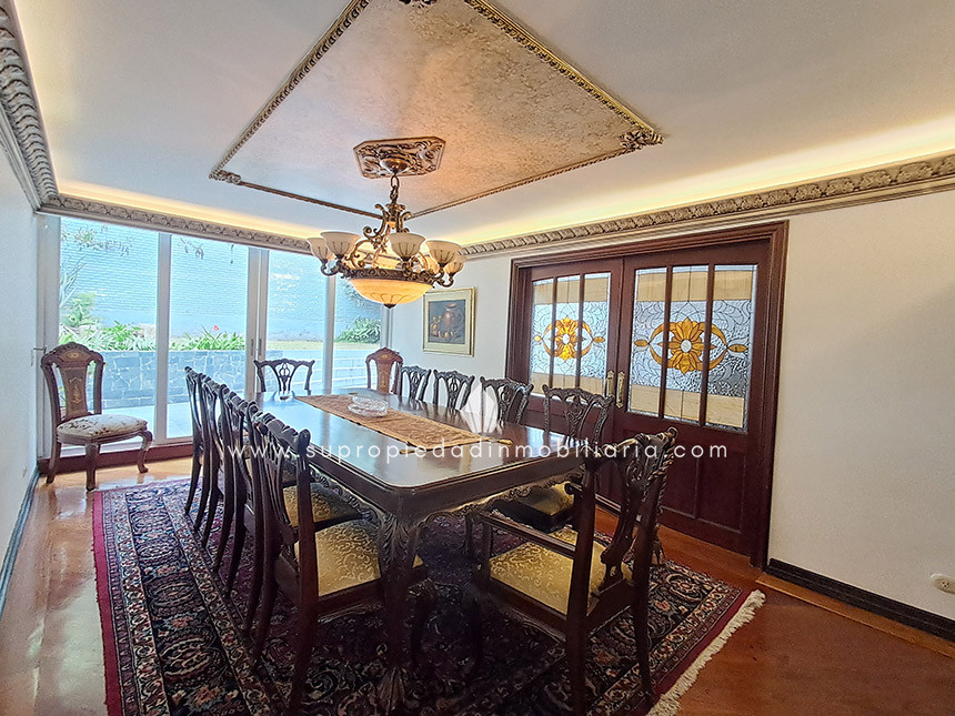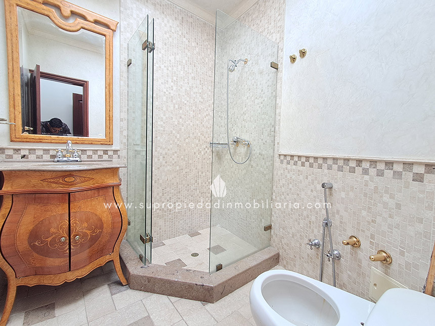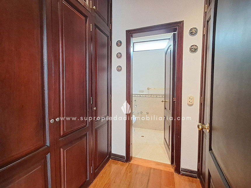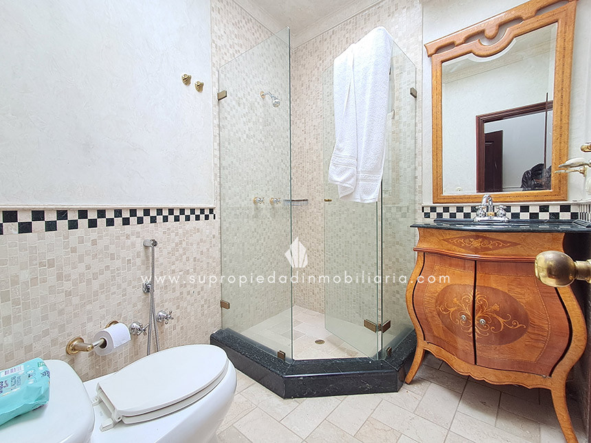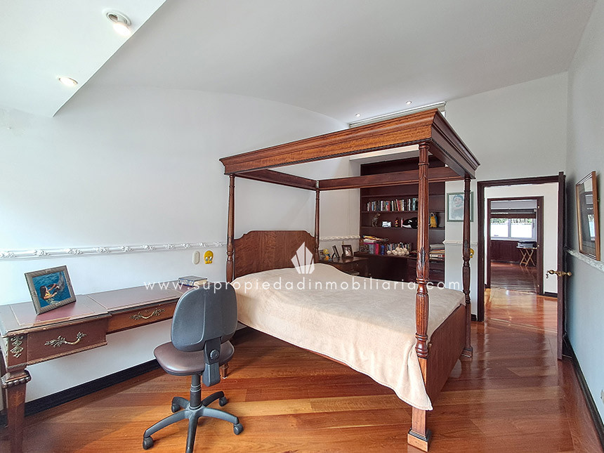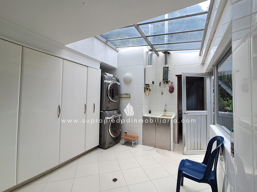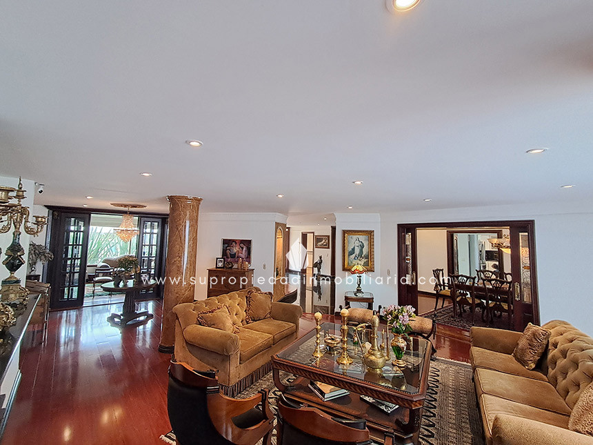 Casa en venta en Santa Ana Oriental, Usaquén. Vive en una de las zonas más exclusivas y seguras de Bogotá. Esta imponente casa de 620 m² construidos y 515 m² de lote ofrece un entorno único con cúpula tipo Tiffany, sala de música y patio privado de 150 m² que colinda con reserva forestal. Disfruta de 4 habitaciones + servicio, 5 baños, estudio, vestier, balcón, terraza, sala con chimenea, zona de TV y cocina integral. Relájate con sauna y jacuzzi en casa. Cuenta con 2 parqueaderos independientes, cuarto útil, excelente luz natural y pisos en mármol. Cerca del Cantón Norte, Universidad Militar y Hacienda Santa Bárbara, con acceso por la Cra. 7, Calle 100, Calle 116 y Av. Caracas. La unidad ofrece portería 24h, zonas verdes, parque infantil, salón social, piscina, sauna, turco, gimnasio, BBQ y más. ¡Exclusividad, confort y naturaleza en un solo lugar! 0.1