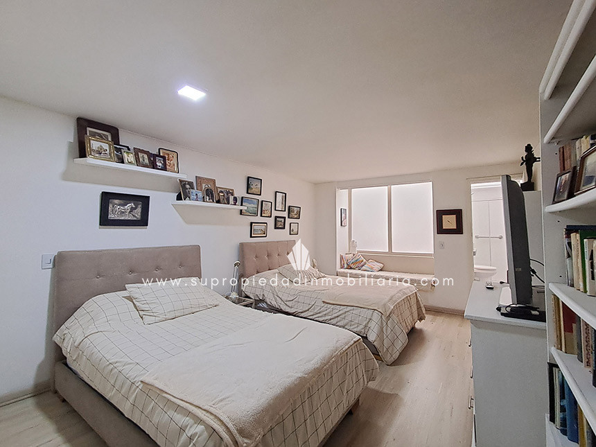 Apartamento en venta en Chico Norte, Usaquén. Descubre este exclusivo apartamento reformado con diseño moderno y acabados en mármol.. Cuenta con 228 m² construidos y 159 m² de área privada, distribuidos en 3 habitaciones, habitación del servicio, estudio, biblioteca, 4 baños en total, y 2 terrazas: una cubierta y otra con acceso desde la alcoba principal, que además incluye jacuzzi interior. Disfruta de sus amplios espacios, cocina integral, sala comedor con chimenea, zona de ropas independiente, patio, vestier, clósets y puerta de seguridad. El conjunto ofrece portería 24/7, ascensor, citófono y parqueadero de visitantes. Ubicado cerca de la Clínica Los Nogales, estación de TransMilenio Calle 100 y el Edificio Cosmos 100. Con excelentes vías de acceso como la calle 100, Autopista Norte, NQS y calle 97. Un hogar ideal para quienes buscan elegancia, confort y excelente conectividad en una zona residencial exclusiva. Contáctanos para más información y agenda tu visita. 0.1
