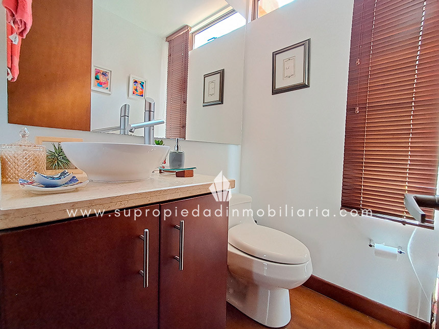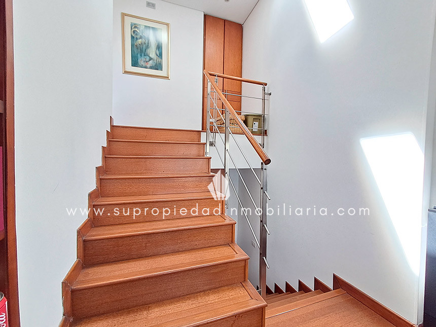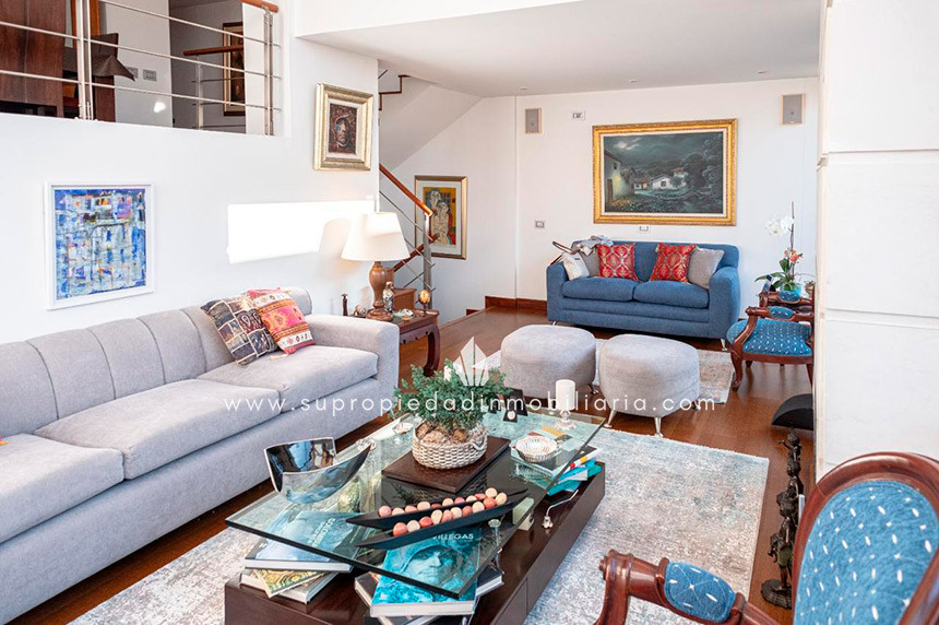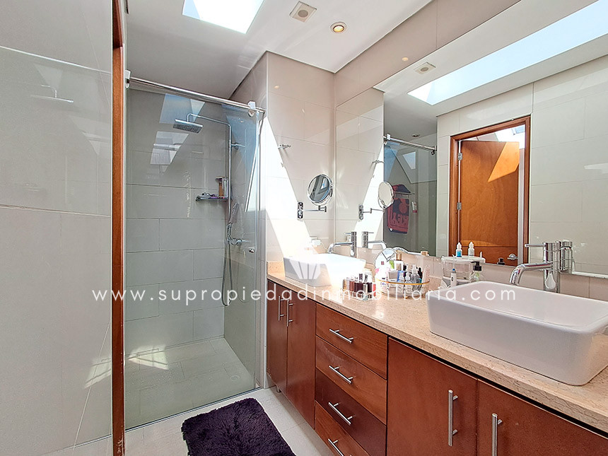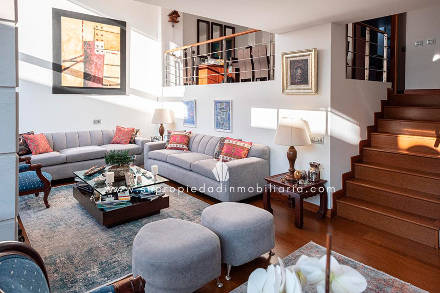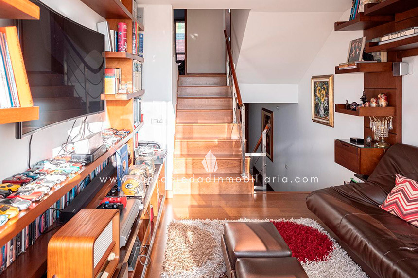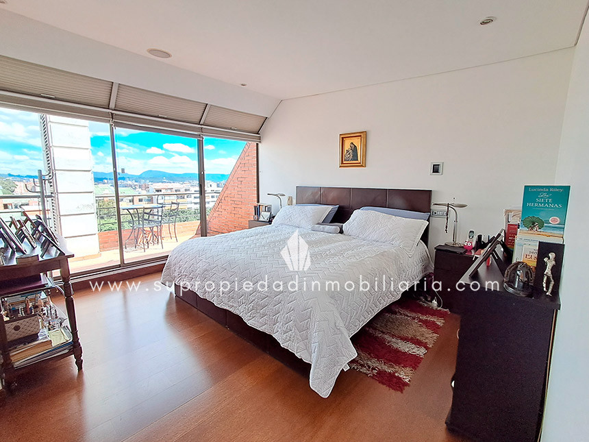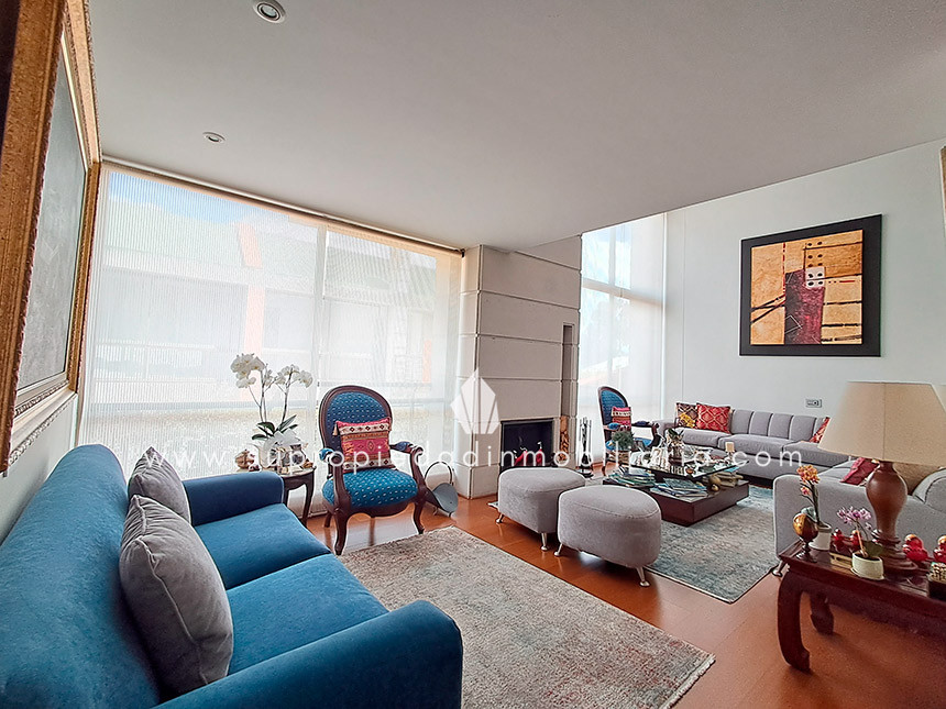 Casa en venta en Bosques de Pinos Usaquén Amplia casa con vista a la ciudad ubicada en exclusiva zona residencial con doble portería. Cuenta con 284 metros construidos y 262 metros privados distribuidos en cuatro habitaciones más servicio con baño privado cinco baños estudio cocina integral sala comedor zona de ropas balcón Vestier y tres closets. Ofrece tres parqueaderos cubiertos independientes con ingreso directo a la casa cuarto útil dentro del inmueble persianas automatizadas en la sala red de gas natural calentador a gas y puerta de seguridad. Ubicación estratégica con cercanía al centro comercial Palatino y al parque Cedro Golf con acceso por la calle 153 carrera séptima y calle 140. La unidad tiene portería 24 horas salón social gimnasio zonas verdes parque infantil citófono parqueadero de visitantes y circuito cerrado de televisión. Contáctanos. 0.1