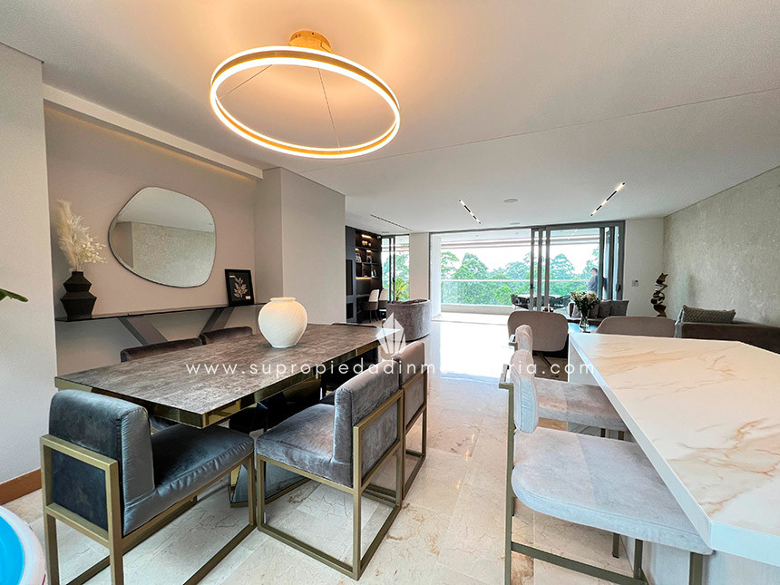 Apartamento en venta en la Cola del Zorro, El Poblado. Descubre el lujo y la comodidad que mereces en este espectacular apartamento con domótica para luces, sonido y Blackout, puerta blindada y un amplio balcón con vista panorámica. Cuenta con 3 alcobas, cada una con baño (principal con Vestier), 2 clósets, cocina integral abierta, sala comedor, zona de ropas, 3 parqueaderos y 2 cuartos útiles. Disfruta de acabados en mármol, red de gas, calentador y chapa de seguridad. Ubicado en Cola del Zorro, cerca de El Tesoro, Universidad CES y vías principales. El edificio ofrece portería 24 h, ascensor, piscina, gimnasio, zonas verdes, BBQ, parque infantil y salón social. Un espacio exclusivo para vivir con estilo. Contáctanos. El inmueble se entrega sin amoblar. 0.1