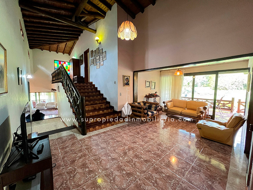 Casa en venta en El Retiro La Fe Vive el encanto campestre en esta amplia casa de 2 niveles con 650 m² construidos en un lote de 20.000 m², rodeada de naturaleza y con reserva propia. Cuenta con 4 alcobas cada una con baño, la principal con Vestier, más alcoba de servicio con baño privado, para un total de 7 baños. Disfruta sala, comedor, estudio, chimenea, cocina independiente con red de gas, zona de ropas, patio y balcón. Perfecta para compartir con familia y amigos gracias a su kiosko BBQ, zona de bar, sauna y extensas zonas verdes con árboles frutales. Tiene 7 parqueaderos independientes (2 cubiertos) y 3 cuartos útiles. Ubicada cerca de colegios, restaurantes, lago La Fe, iglesias y aeropuerto, con excelentes vías de acceso por La Fe-El Retiro, Las Palmas y Loma del Escobero. Con portería 24 h, citófono, CCTV, zonas comunes y parqueadero de visitantes. ¡Haz realidad tu sueño de vivir en un entorno exclusivo y natural, contáctanos! 0.1