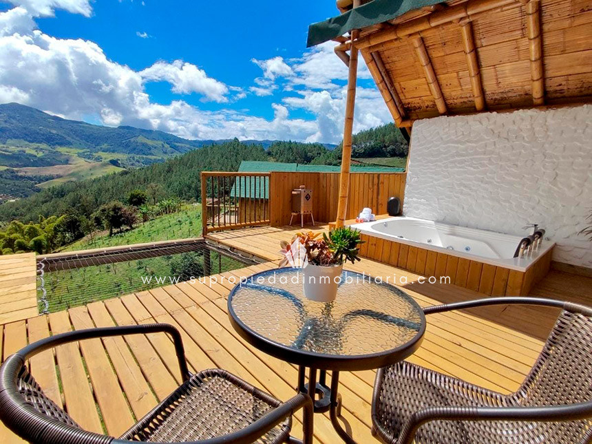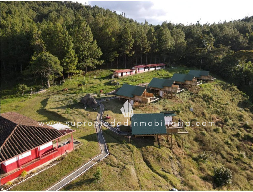 Finca en venta en Jericó, Antioquia. ¡Excepcional oportunidad de inversión en Jericó! Finca de 11.5 hectáreas que combina turismo y producción agrícola a solo 20 minutos del parque principal. Cuenta con 5 cabañas tipo glamping completamente equipadas (jacuzzi, baño privado, cama deluxe, malla catamarán y deck en madera inmunizada), dos casas (principal y de mayordomo), kiosko fonda-restaurante, zona de fogata, caballerizas y 1.000 árboles de aguacate Hass de 3 años. La propiedad tiene 5 fuentes de agua natural que la cruzan, pozo séptico, 800 m² construidos y garaje para 8 vehículos. El eco hotel está registrado y con todos los permisos vigentes. SE VENDE SIN AMOBLAR ¡Ideal para rentabilidad turística y productiva en un paraíso natural! Contáctanos hoy y agenda tu visita. 0.1