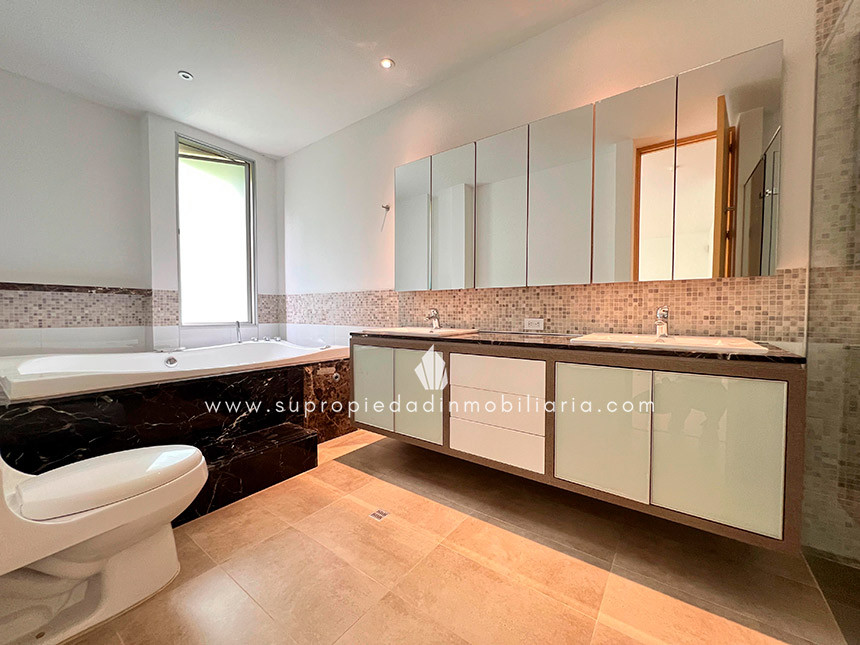 Casa en arriendo en Envigado, Las Callejas. Vive con comodidad y exclusividad en esta amplia casa de 400 m² . Dispone de 3 habitaciones con Vestier, más habitación de servicio con baño, para un total de 5 baños, ofreciendo privacidad y funcionalidad. La cocina integral con red de gas natural y el calentador a gas hacen tu día a día más práctico, mientras que sus pisos en mármol aportan elegancia. Incluye 4 parqueaderos, dos de ellos cubiertos tipo garaje, cuarto útil y sala comedor con acceso a balcón. La unidad residencial brinda portería 24 horas, salón social, zonas verdes, piscina, turco, gimnasio, zona BBQ, cancha, parque infantil, citófono, CCTV, parqueadero de visitantes y shut de basuras. Con excelentes vías de acceso como la Transversal Intermedia, Superior e Inferior, Palmas y Loma del Escobero, estarás cerca de colegios, universidades y centros comerciales como San Lucas, Terracina y City Plaza. ¡Haz de este hogar tu próximo espacio de vida! Contáctanos. 0.1