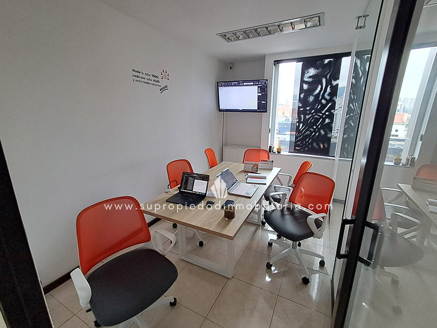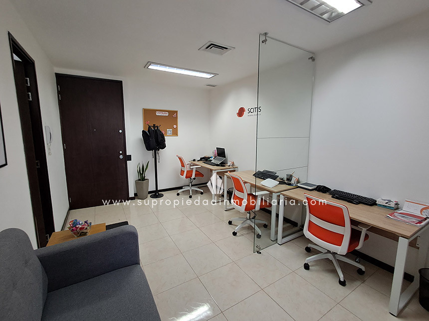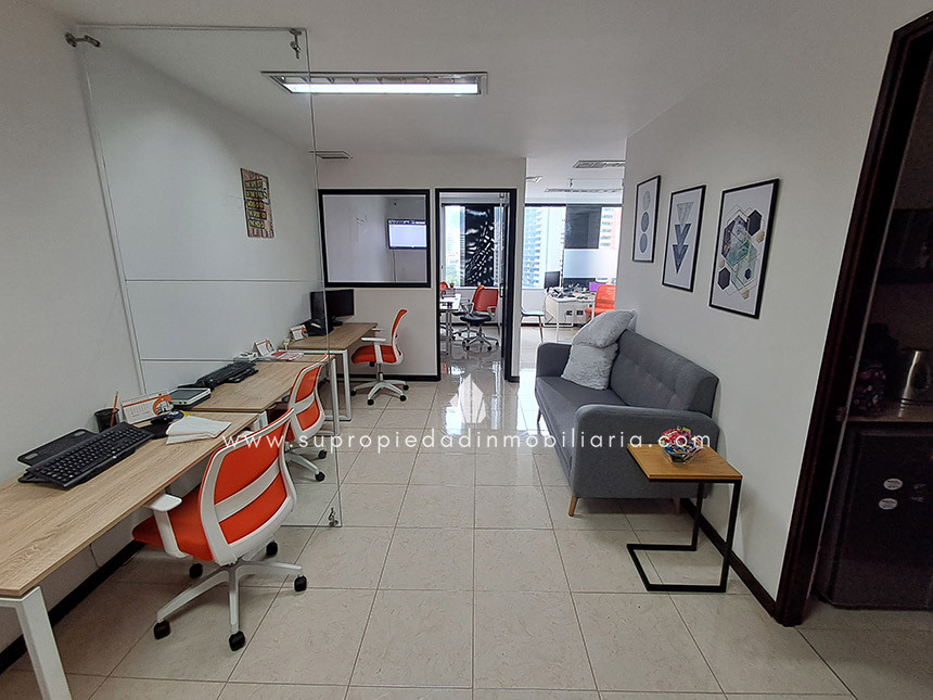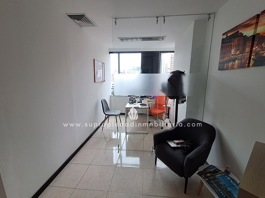 Oficina en arriendo, Patio Bonito, El Poblado. Oficina exterior de 45 m² muy luminosa, con cocineta, baño privado, piso en cerámica y puerta peatonal independiente. Ideal para profesionales, consultorios o pequeñas empresas. Incluye 5 parqueaderos en línea cubiertos (gran ventaja en la zona) + parqueaderos de visitantes. Edificio con portería 24 horas, ascensor y alta seguridad. Ubicación privilegiada a pasos del Parque El Poblado, con acceso rápido por Av. El Poblado y excelente mixtura comercial. Todo el dinamismo del sector más cotizado de Medellín al alcance. ¡Administración incluida y precio + IVA! ¡Contáctanos hoy y lleva tu negocio al centro de todo! SE ENTREGA SIN AMOBLAR 0.1
