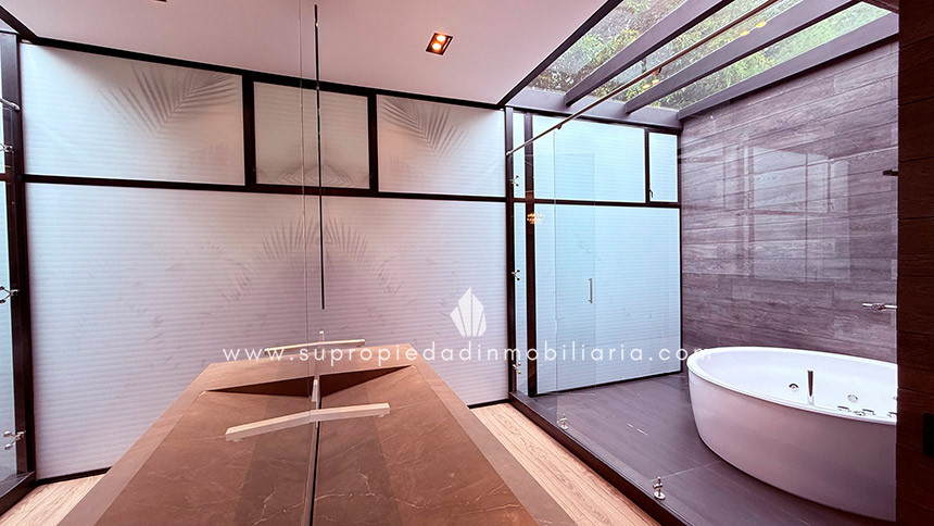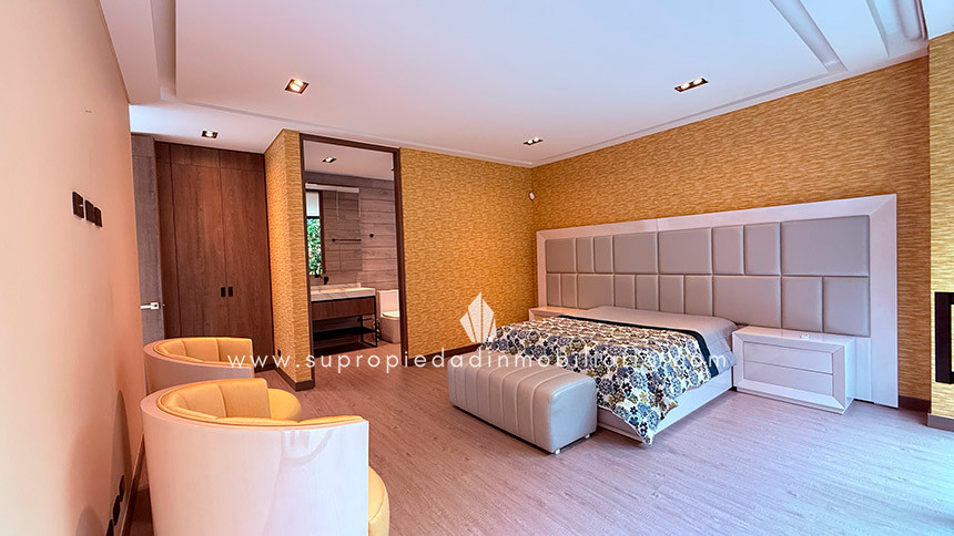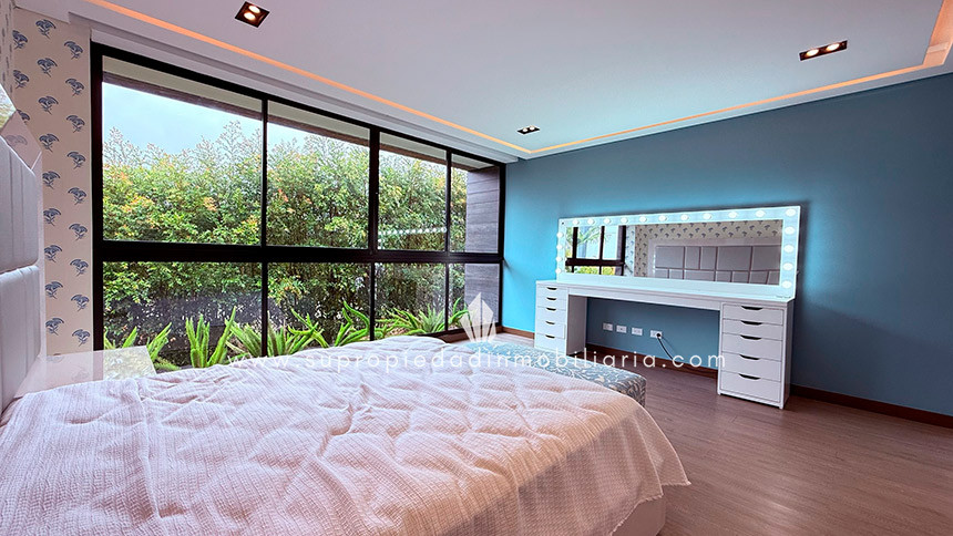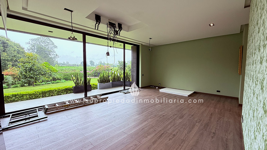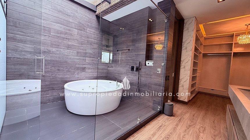 Casa campestre en venta, Llano Grande, Rionegro. Residencia de lujo de 595 m² construidos en lote propio de 2.580 m². 6 amplias habitaciones, todas con baño privado en suite y Vestier (una adaptable como estudio), más habitación de servicio con baño independiente. Total 6 baños + baño social. Sala de TV, sala de visitas, sala-comedor de gran tamaño, cocina independiente moderna tipo americana con despensa, lavandería. Piscina climatizada privada, jacuzzi, deck con vista a la quebrada, zona BBQ, hermosos jardines maduros, perrera y dos casitas de almacenamiento. Incluye garaje cubierto para 4 vehículos + portería y vigilancia 24 horas en el condominio, acceso pavimentado y CCTV. Ubicación privilegiada en Llanogrande, a minutos de colegios, centros comerciales, restaurantes y con acceso rápido a Medellín, aeropuerto JMC y túnel de Oriente. ¡Propiedad única para quienes buscan exclusividad, espacio y contacto con la naturaleza! ¡Contáctanos ! SE ENTREGA SIN AMOBLAR 0.1