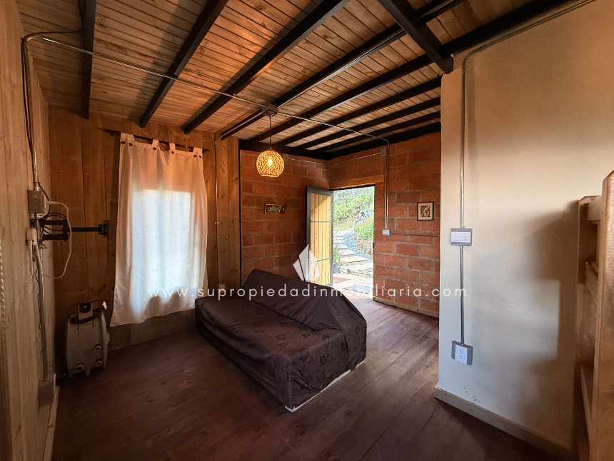 Cabaña en venta en Vereda Yolomba, Guarne. Acogedora cabaña duplex de 152 m² en entorno residencial campestre, perfecta para desconectarse y disfrutar de la tranquilidad. Dispone de 2 amplias alcobas, 1 baño completo, cocina integral equipada, zona de ropas, patio privado, terraza y balcón ideales para disfrutar del paisaje y el aire puro. Cuenta con zonas verdes que aportan frescura y privacidad, 1 parqueadero y red de gas propano. Excelente ubicación con fácil acceso desde Medellín, Llanogrande, Rionegro, el Aeropuerto JMC y el Túnel de Oriente. ¡Ideal para escapadas de fin de semana o residencia permanente en la naturaleza! SE ENTREGA SIN AMOBLAR. Llama ya y agenda tu visita. 0.1