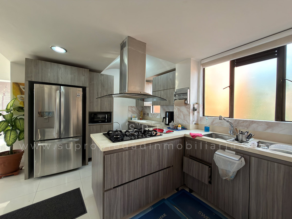 Apartamento en venta en Las Lomas 2, El Poblado. Disfrute de este espectacular apartamento de 168 m² ubicado en un sector residencial muy tranquilo, con excelente conectividad gracias al rápido acceso por la vía Las Palmas y Transversal Superior. Dispone de amplia sala comedor, gran balcón con vista al occidente, medio baño social, cocina abierta tipo americana totalmente dotada, zona de ropas amplia y despensa. Tres cómodas habitaciones, cada una con baño privado; la principal cuenta con amplio vestier. Además, incluye zona de estudio abierta y cuarto de servicio (sin baño privado). Dos parqueaderos paralelos cubiertos y uno útil. Piso en porcelanato, red de gas natural, calentador a gas y puerta principal con chapa de seguridad. El conjunto ofrece vigilancia 24 horas, ascensor, salón social, zonas verdes, citófono, parque infantil, CCTV, zona BBQ, parqueaderos visitantes y shut de basuras. SE ENTREGA SIN AMOBLAR. Contáctenos ahora para programar su visita. 0.1