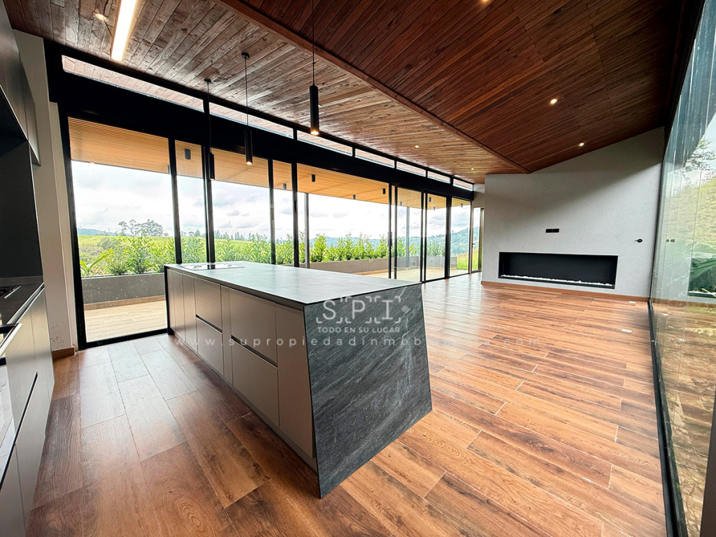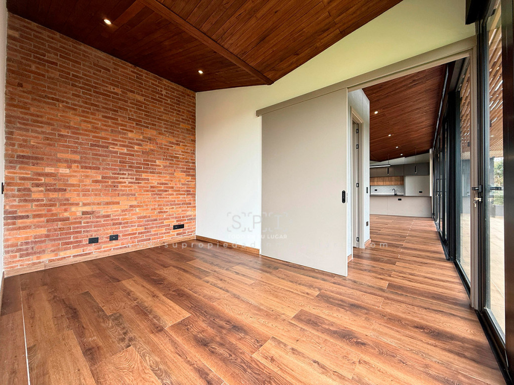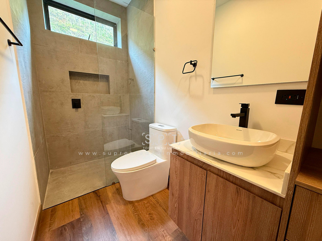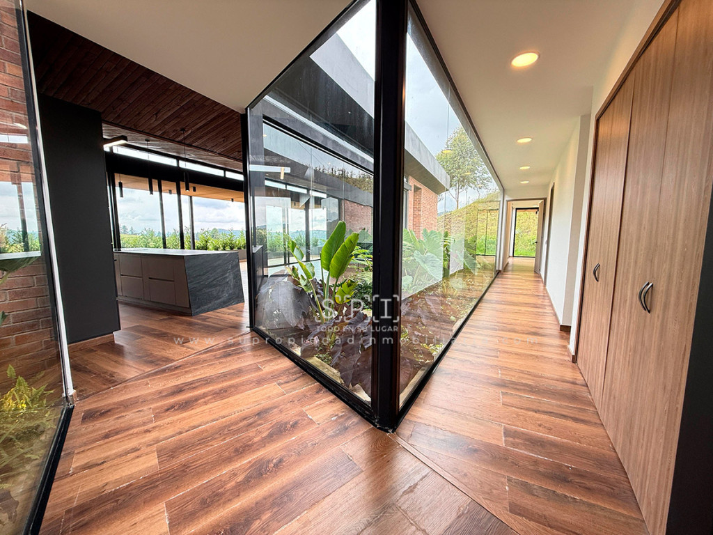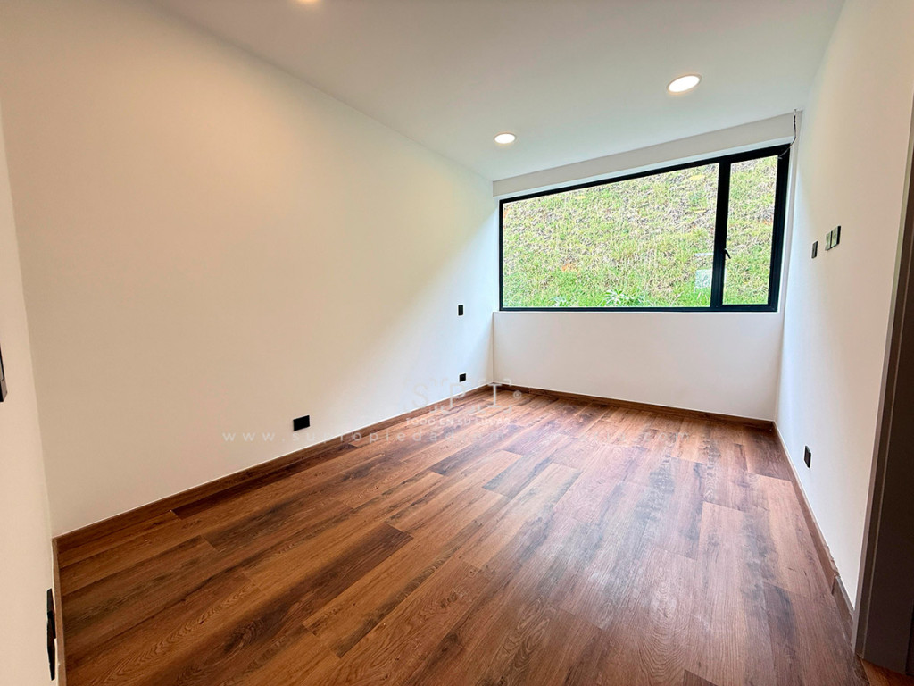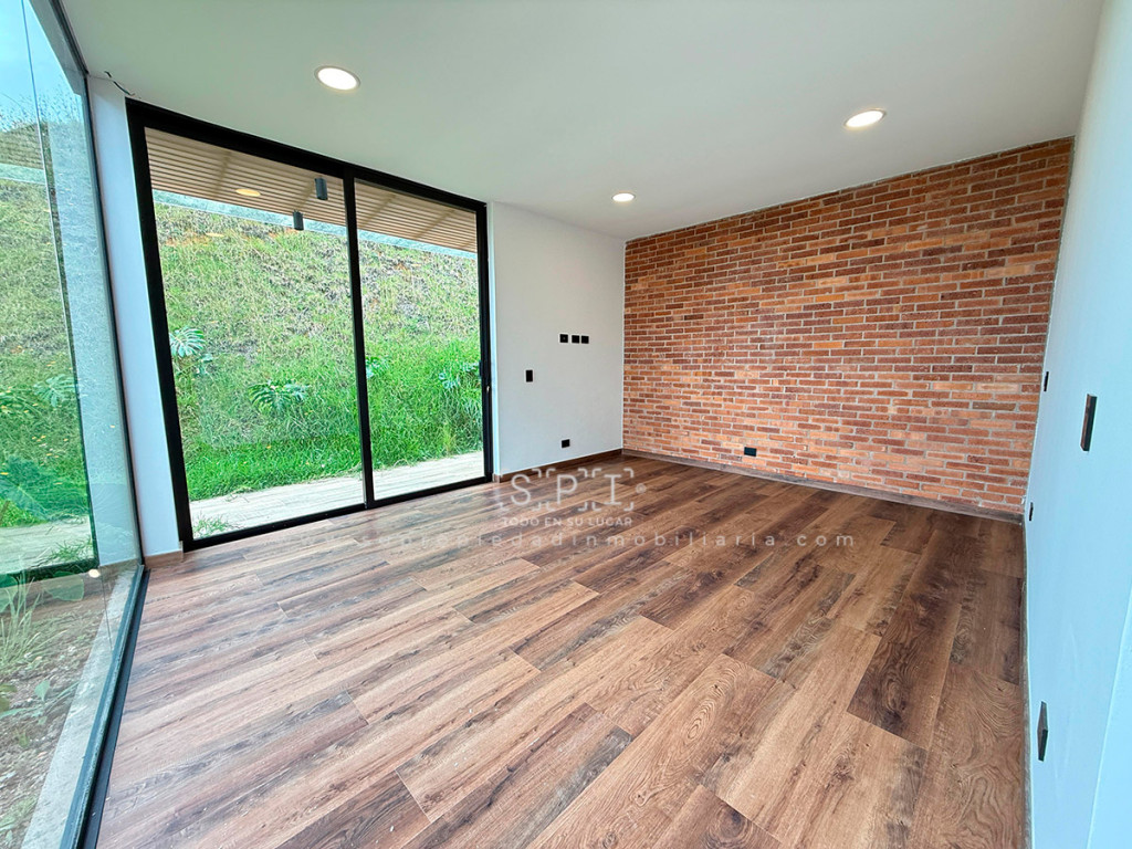 Casa en arriendo, Alto de las Palmas, Envigado. Moderna propiedad de 331 m² en lote privado de 1.500 m² dentro de condominio exclusivo con vigilancia. Cuenta con 3 alcobas con vestier y baño, 5 baños, estudio, family room, sala-comedor con vista panorámica, cocina integral abierta, terraza y cuarto útil. Disfruta de amplias zonas verdes, senderos ecológicos, parqueadero para 4 vehículos, citófono y ambiente familiar. Su diseño de un nivel ofrece comodidad y elegancia, con balcón amplio y jardín privado. ¡Agenda tu visita y descubre tu nuevo hogar! Nota: SE ENTREGA SIN AMOBLAR 0.1