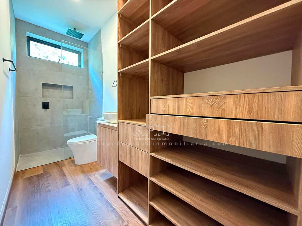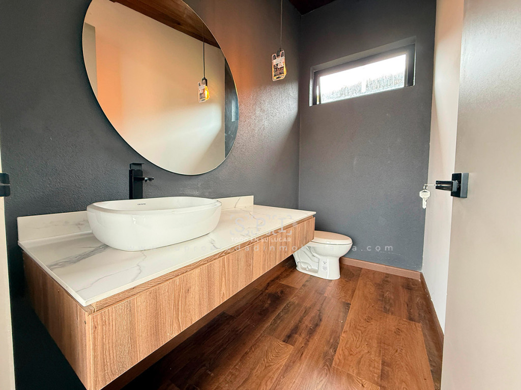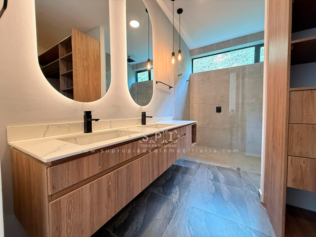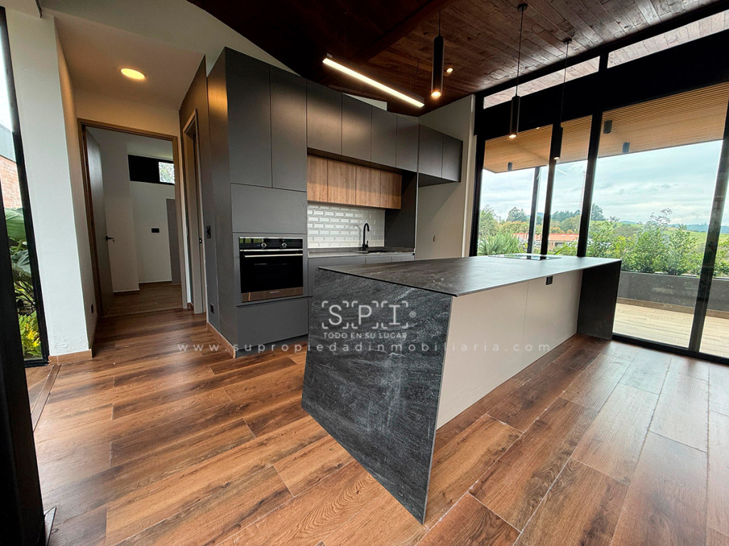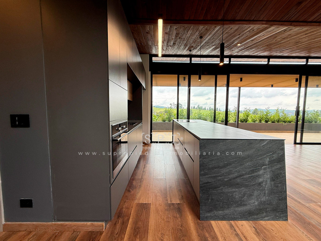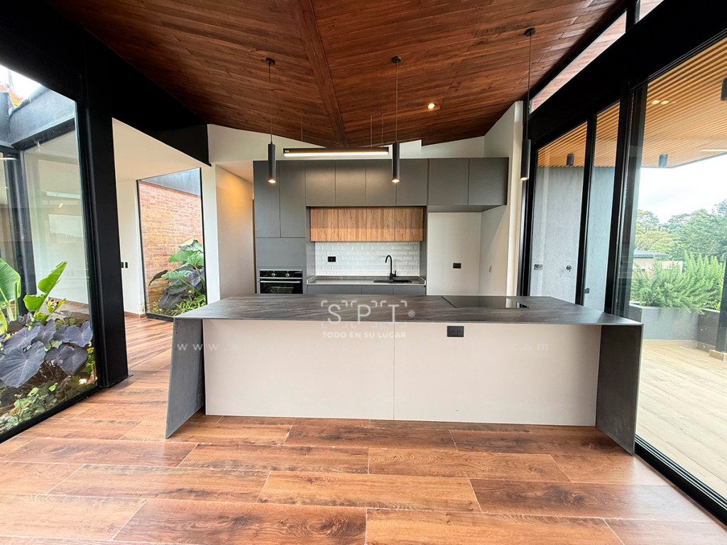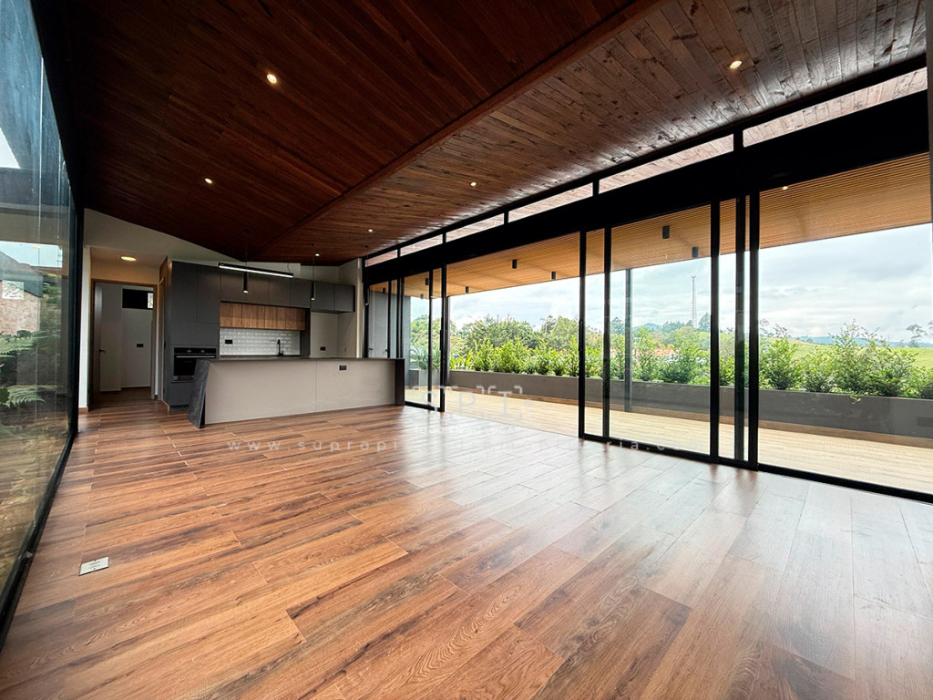 Casa en arriendo, Alto de las Palmas, Envigado. Moderna propiedad de 331 m² en lote privado de 1.500 m² dentro de condominio exclusivo con vigilancia. Cuenta con 3 alcobas con vestier y baño, 5 baños, estudio, family room, sala-comedor con vista panorámica, cocina integral abierta, terraza y cuarto útil. Disfruta de amplias zonas verdes, senderos ecológicos, parqueadero para 4 vehículos, citófono y ambiente familiar. Su diseño de un nivel ofrece comodidad y elegancia, con balcón amplio y jardín privado. ¡Agenda tu visita y descubre tu nuevo hogar! Nota: SE ENTREGA SIN AMOBLAR 0.1