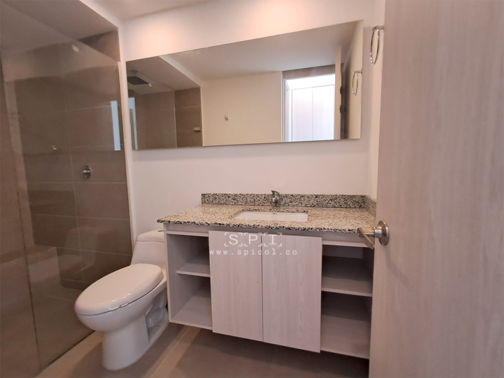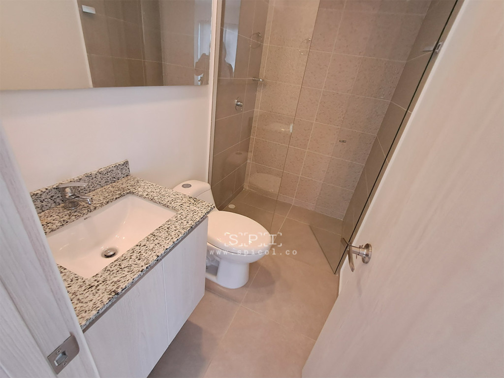 Apartamento en arriendo, Pan de Azúcar, Sabaneta. Hermoso apartamento de 80 m² con excelente distribución y una vista privilegiada desde el balcón. Dispone de 2 alcobas, 2 baños, estudio, sala comedor y zona de ropas. La cocina integral está equipada con red de gas natural y calentador a gas, mientras que los acabados combinan cerámica y madera laminada en las habitaciones. El conjunto residencial ofrece vigilancia 24 horas, ascensor, salón social, zonas verdes, piscina, sauna, turco, gimnasio, parque infantil, zona BBQ, cancha y parqueadero doble en línea cubierto más visitantes. Una opción perfecta para quienes buscan confort y calidad de vida. ¡Contáctanos y agenda tu visita hoy mismo! Nota: SE ENTREGA SIN AMOBLAR. 0.1