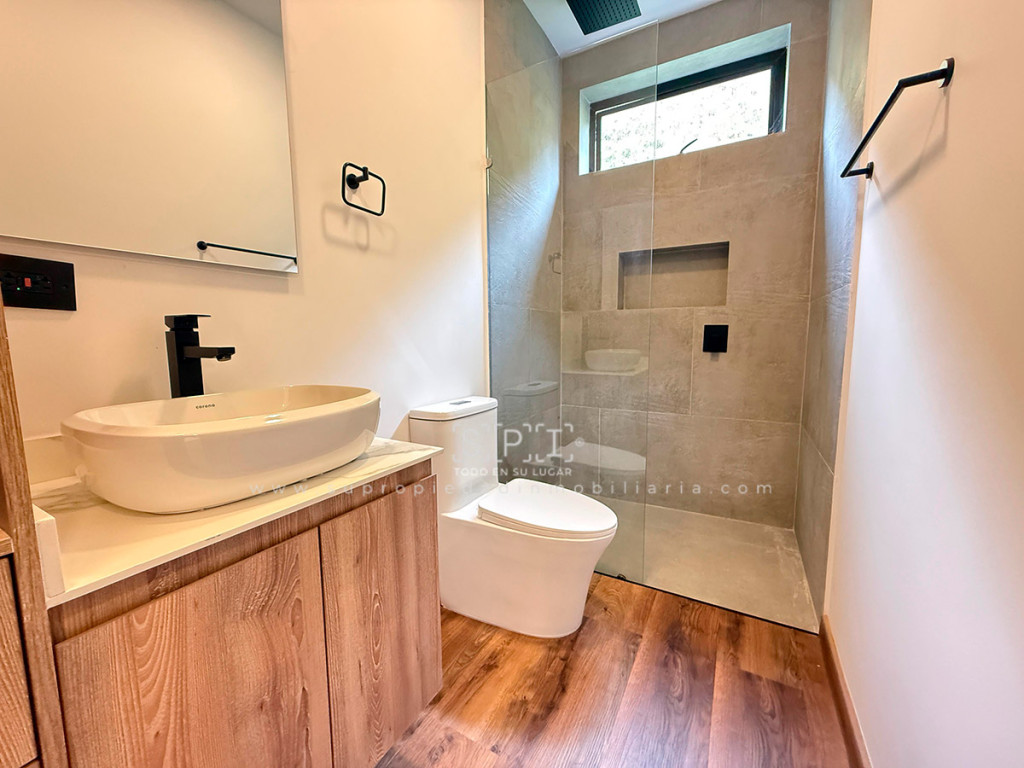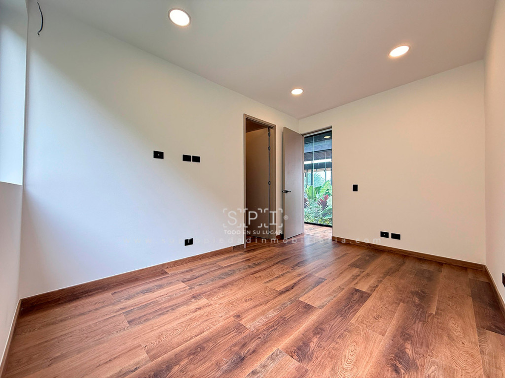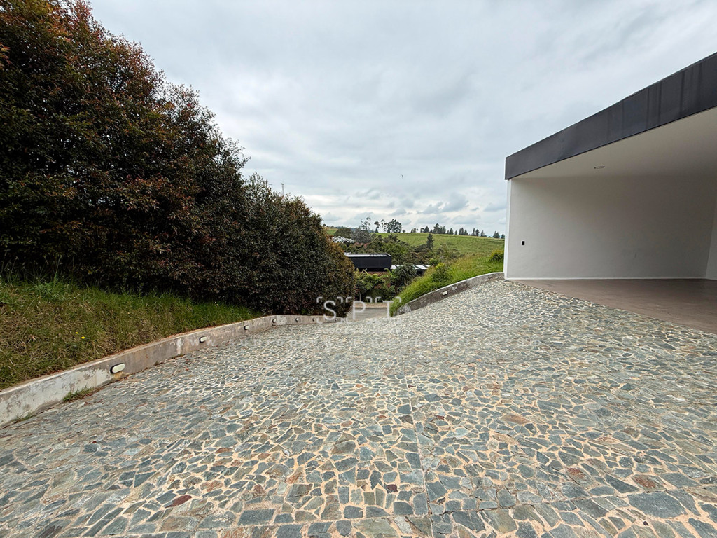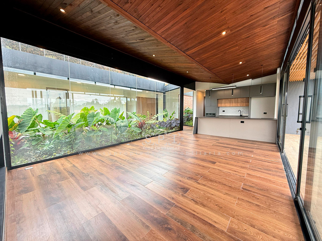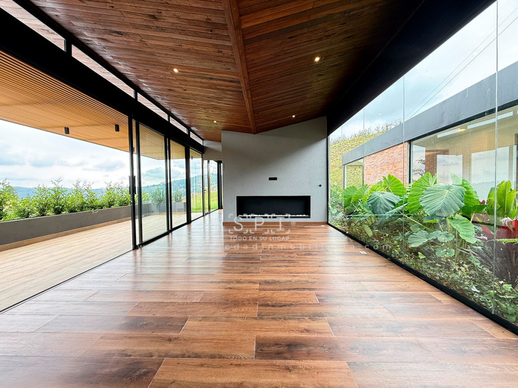 Casa en arriendo, Alto de las Palmas, Envigado. Moderna propiedad de 331 m² en lote privado de 1.500 m² dentro de condominio exclusivo con vigilancia. Cuenta con 3 alcobas con vestier y baño, 5 baños, estudio, family room, sala-comedor con vista panorámica, cocina integral abierta, terraza y cuarto útil. Disfruta de amplias zonas verdes, senderos ecológicos, parqueadero para 4 vehículos, citófono y ambiente familiar. Su diseño de un nivel ofrece comodidad y elegancia, con balcón amplio y jardín privado. ¡Agenda tu visita y descubre tu nuevo hogar! Nota: SE ENTREGA SIN AMOBLAR 0.1