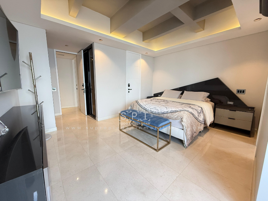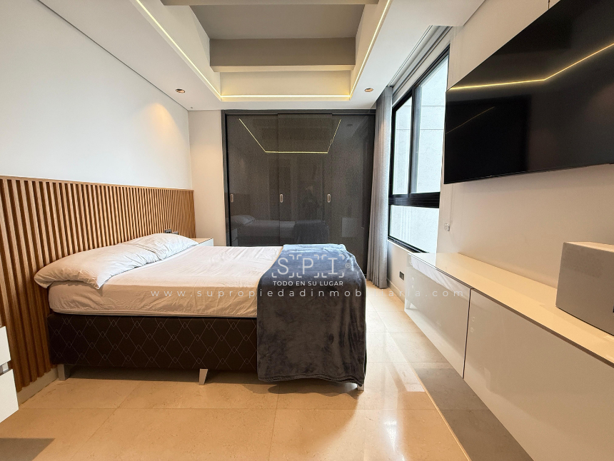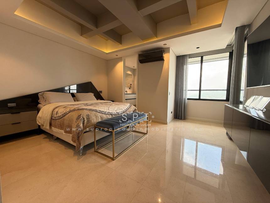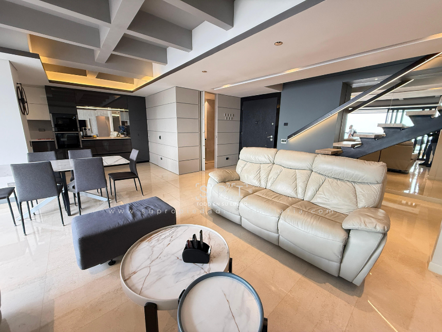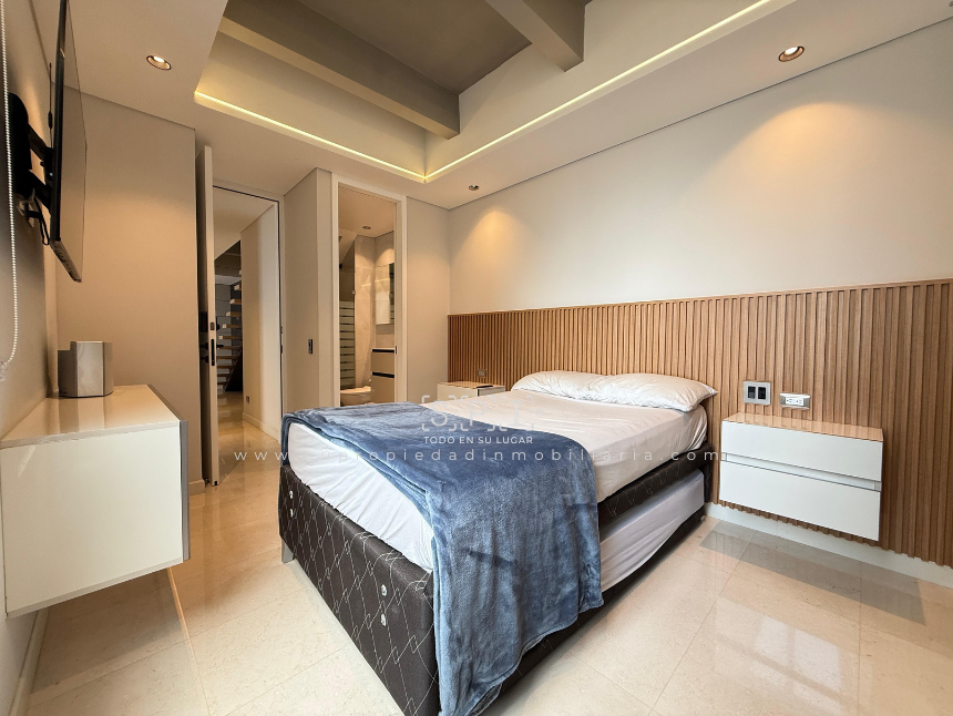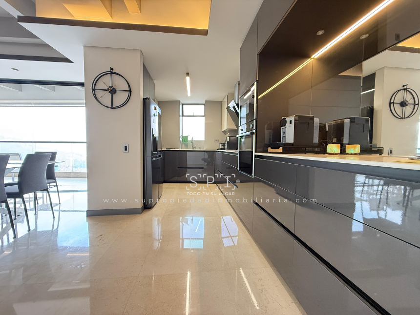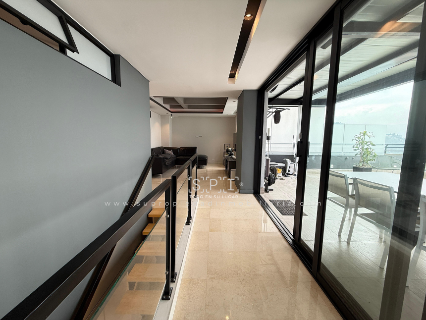 Apartamento en arriendo, Loma de las Brujas, Envigado. Exclusivo penthouse dúplex de lujo con diseño moderno y acabados en mármol, distribuido en dos niveles que ofrecen amplitud y confort. Cuenta con tres alcobas cada una con baño y vestier, estudio independiente, cocina integral abierta, sala comedor con chimenea, terraza y balcón con vista panorámica a la ciudad. Incluye alcoba de servicio con baño privado, tres parqueaderos, cuarto útil y acceso a completas zonas comunes: piscina, gimnasio, salón social, turco, cancha, zona BBQ, parque infantil y vigilancia 24 horas. Vive la experiencia de un espacio único que combina elegancia y funcionalidad. ¡Agenda tu visita y enamórate de tu nuevo hogar! Nota: SE ENTREGA AMOBLADO. 0.1