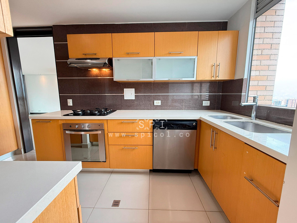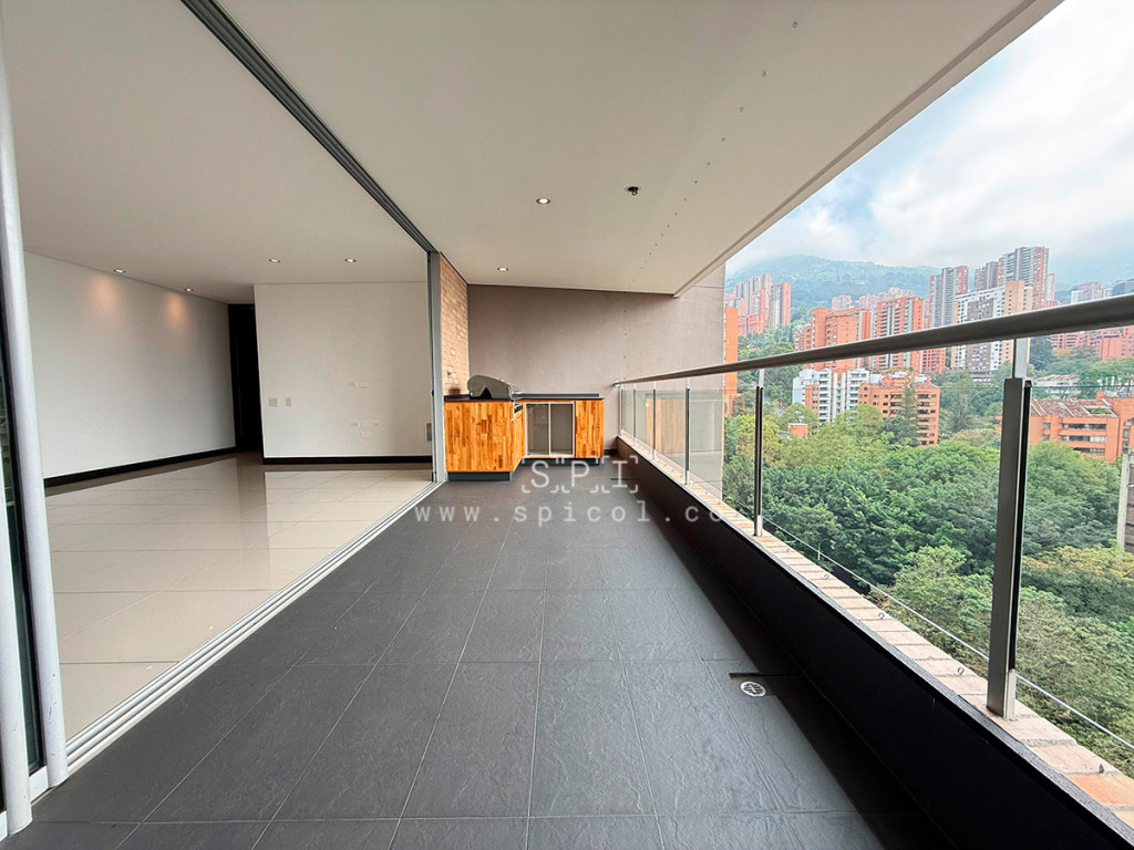 Apartamento en arriendo en El Tesoro, El Poblado. Exclusivo apartamento de 170 m² con acabados premium en el sector más prestigioso de Medellín. Cuenta con 3 amplias alcobas (todas con closet, una con vestier), estudio independiente, 3.5 baños (incluye baño social sencillo), cuarto de servicio con baño propio, sala comedor luminosa, balcón, cocina integral con gas natural y calentador a gas, zona de ropas. Piso en porcelanato y madera laminada en habitaciones, puerta con chapa de seguridad. Vigilancia 24/7, ascensor, salón social, zonas verdes, piscina, turco, cancha squash, gimnasio, parque infantil, parqueaderos visitantes y shut de basuras. Incluye 2 parqueaderos independientes. Ubicación privilegiada cerca de Provenza, con acceso rápido por Loma de El Tesoro y Transversal Inferior. SE ENTREGA SIN AMOBLAR. ¡Vive con todo el confort y exclusividad que El Poblado ofrece! Contáctanos para detalles y agendar tu visita. 0.1