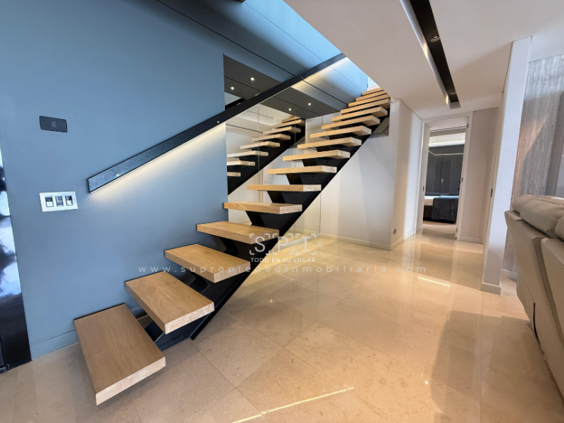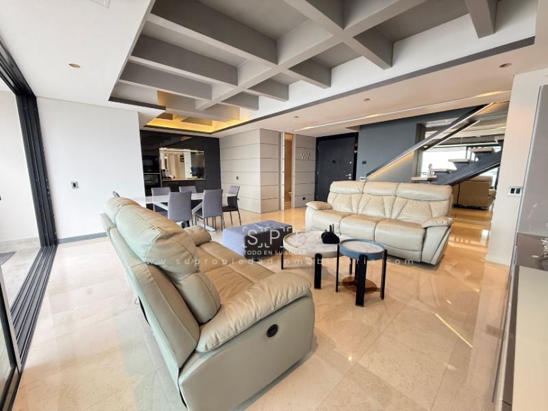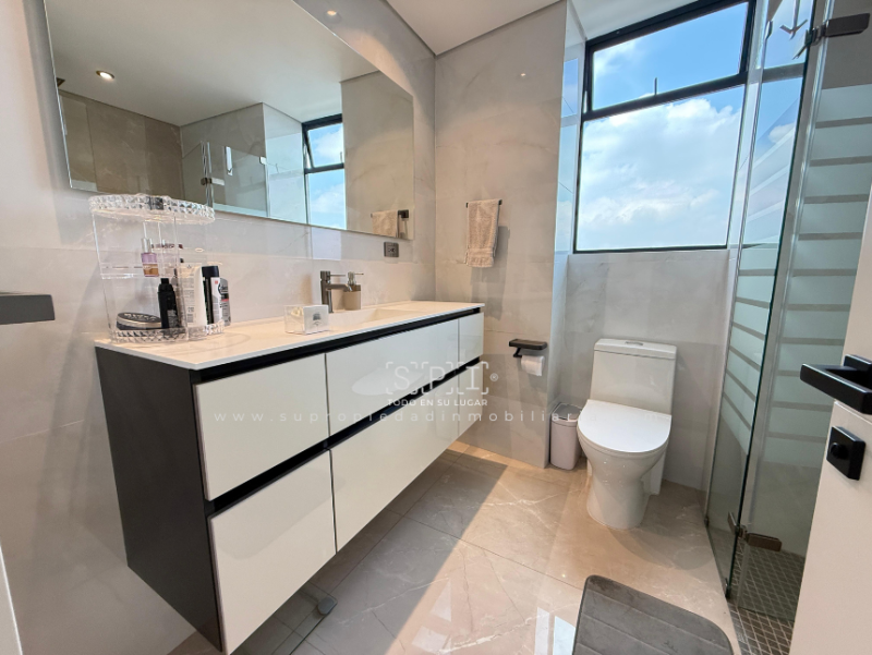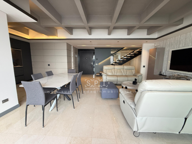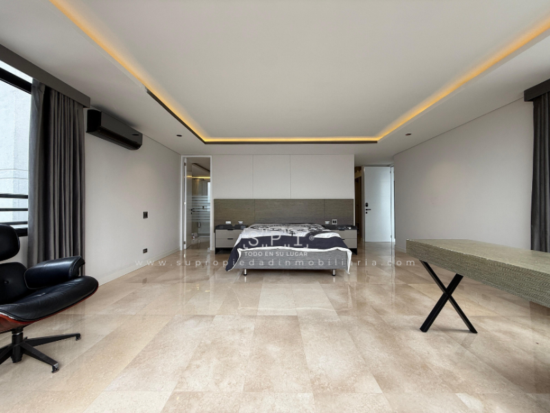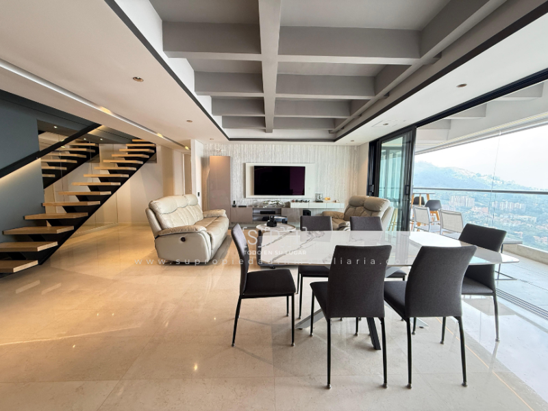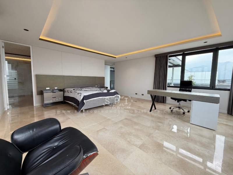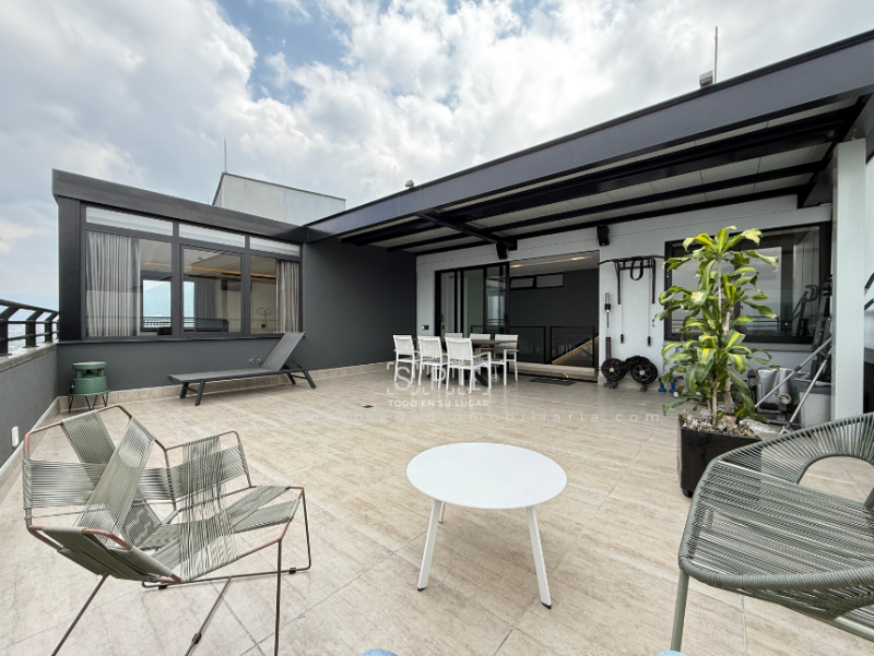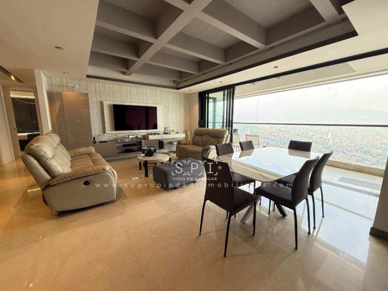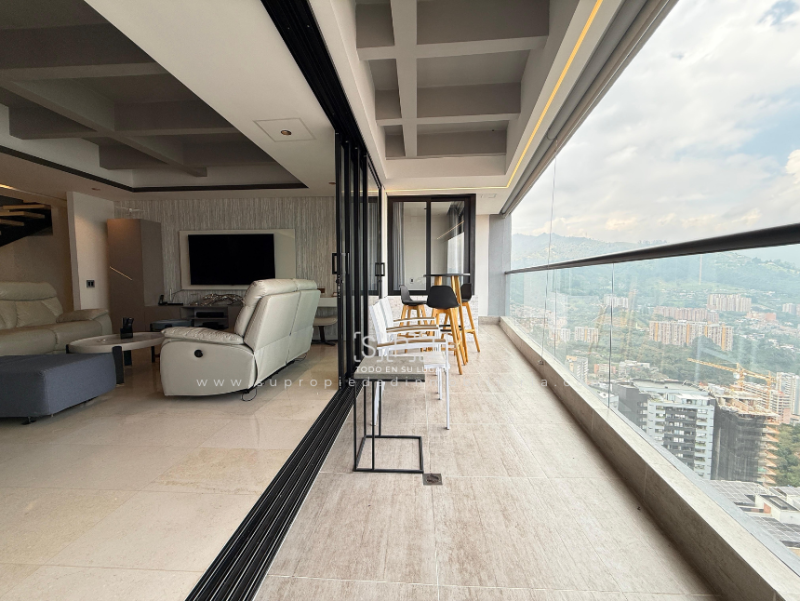 Apartamento en Venta, Loma de las Brujas, Envigado. Exclusivo penthouse dúplex de lujo con diseño moderno y acabados en mármol, distribuido en dos niveles que ofrecen amplitud y confort. Cuenta con tres alcobas cada una con baño y vestier, estudio independiente, cocina integral abierta, sala comedor con chimenea, terraza y balcón con vista panorámica a la ciudad. Incluye alcoba de servicio con baño privado, tres parqueaderos, cuarto útil y acceso a completas zonas comunes: piscina, gimnasio, salón social, turco, cancha, zona BBQ, parque infantil y vigilancia 24 horas. Vive la experiencia de un espacio único que combina elegancia y funcionalidad. ¡Agenda tu visita y enamórate de tu nuevo hogar! Nota: SE ENTREGA AMOBLADO. 0.1