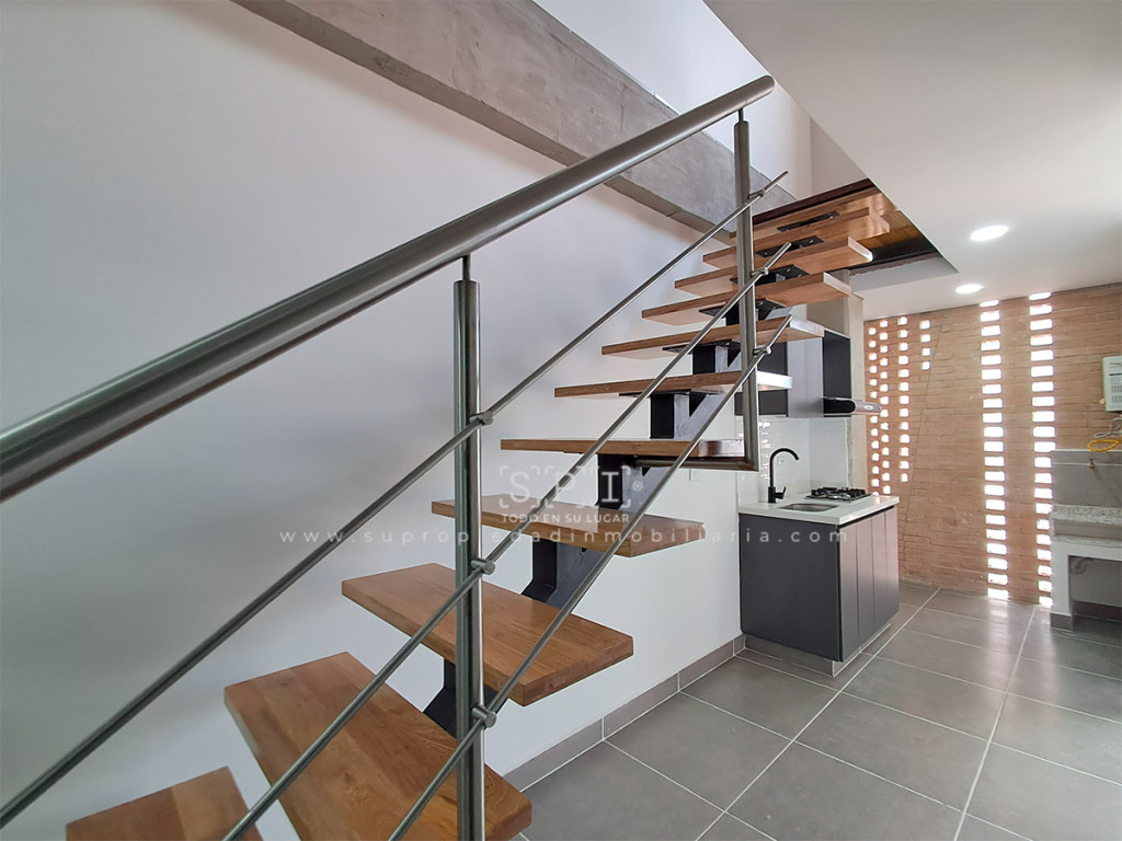 Apartamento en arriendo en Calle Larga, Sabaneta. Apartamento en dúplex de 65 m² recién estrenar en edificio moderno, con hermosa vista a la ciudad desde balcón pequeño y excelente iluminación natural. Primer nivel: sala-comedor integrada, cocina integral con red de gas natural y calentador a gas, zona de ropas y baño social. Segundo nivel: 2 alcobas (principal con baño privado y clóset, secundaria con baño privado). Piso en cerámica resistente en todas las áreas. Cuenta con ascensor. Ubicación privilegiada en zona residencial tranquila, cerca del Parque de Sabaneta, Centro Comercial Aves María y CC Mayorca, con acceso rápido por Av. Las Vegas, Av. El Poblado y Av. Regional. SE ENTREGA SIN AMOBLAR ¡Oportunidad ideal para parejas o pequeñas familias en edificio nuevo y con vista espectacular! Contáctanos ya para agendar tu visita. 0.1