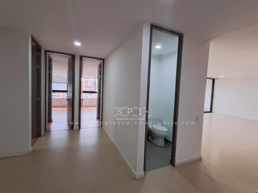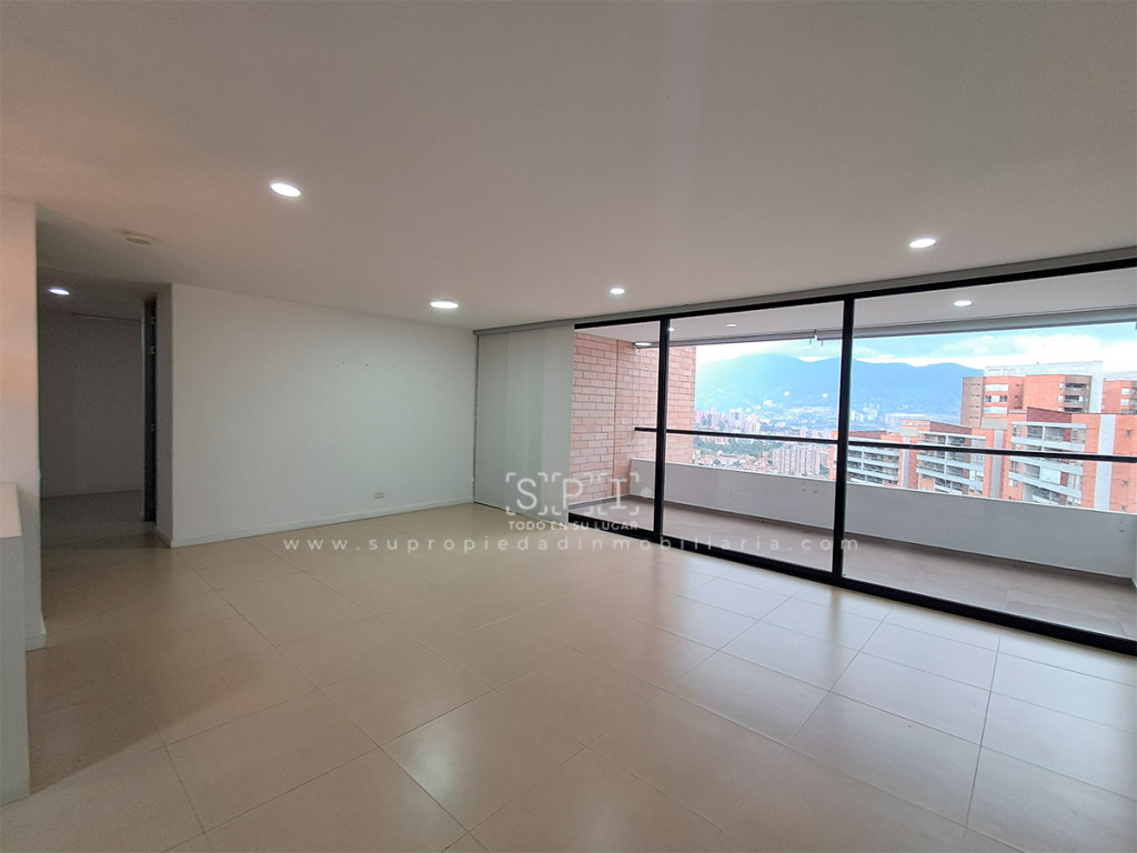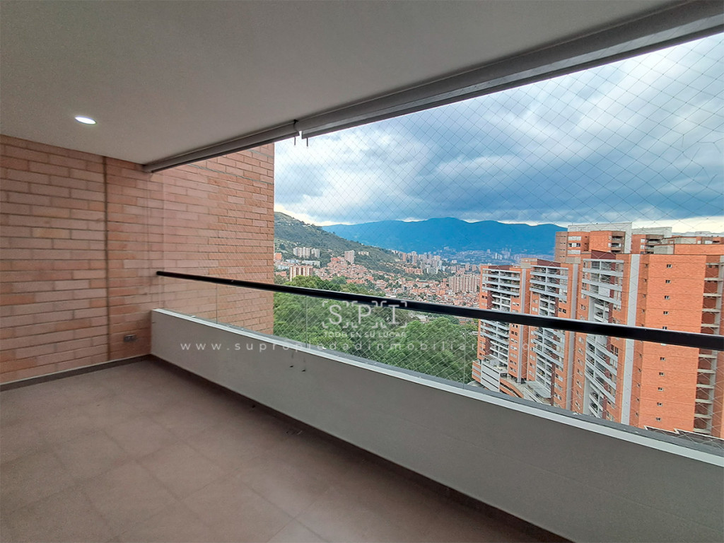 Apartamento en arriendo, Envigado, Loma de las Brujas. Apartamento de 150 m² con hermosa vista a la ciudad desde amplio balcón, muy iluminado y con excelente distribución. Cuenta con 3 alcobas (principal con Vestier), estudio, sala comedor, cocina integral gas natural, calentador gas, zona ropas y 4 baños. Incluye 2 parqueaderos lineales cubiertos y 1 útil. Piso cerámica + madera laminada en habitaciones. Conjunto con vigilancia 24h, ascensor, salón social, zonas verdes con senderos frescos, zona pet friendly, parque infantil, piscina, sauna, turco, cancha, gimnasio, BBQ, PQ visitantes y shut basuras. Cerca City Plaza, Loma del Escobero, Hospital Manuel Uribe Ángel y Colegio Benedicto de Santa María. Acceso por Loma de las Brujas, Transversal Intermedia, Las Vegas y Av. El Poblado. SE ENTREGA SIN AMOBLAR. ¡Vistas increíbles y entorno fresco! Contáctanos y agenda visita. 0.1